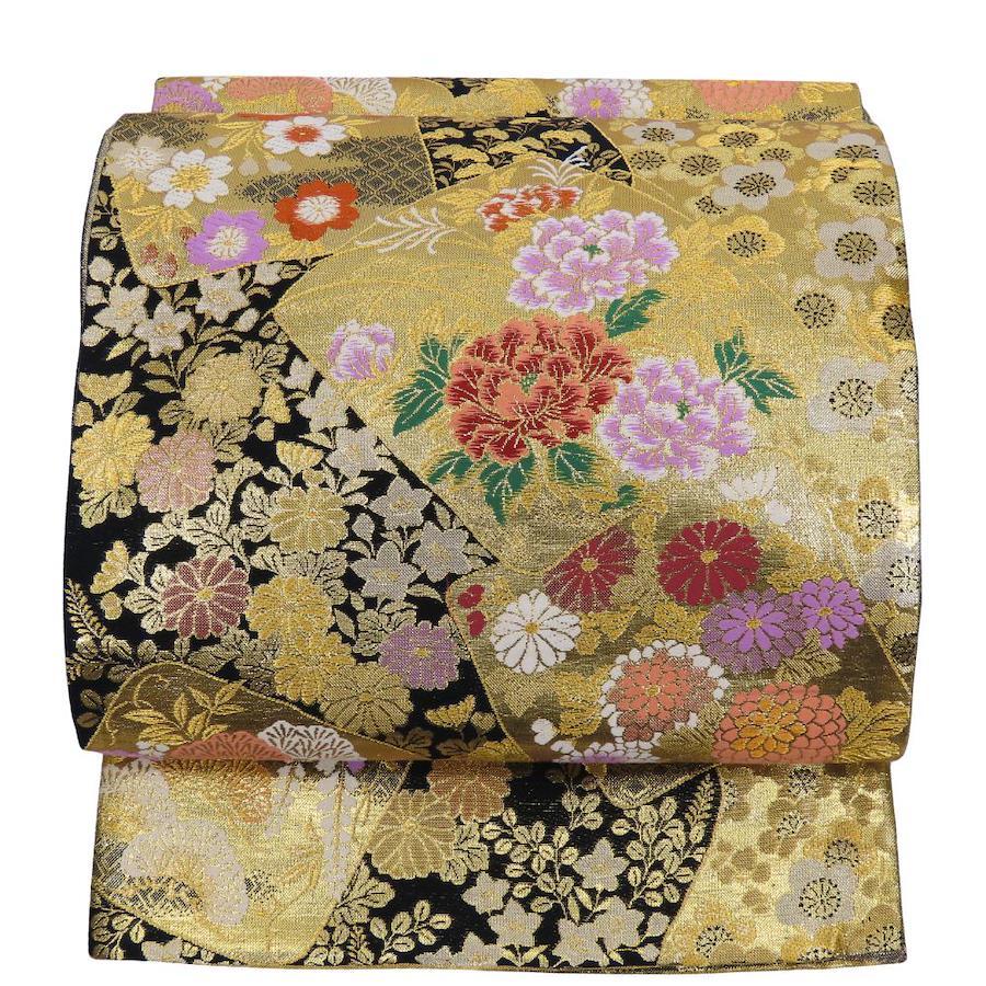| 品名 | 【中古】 袋帯 正絹(金銀糸除く) 黒 金 マルチカラー フォーマル 総模様 レディース 女性 |