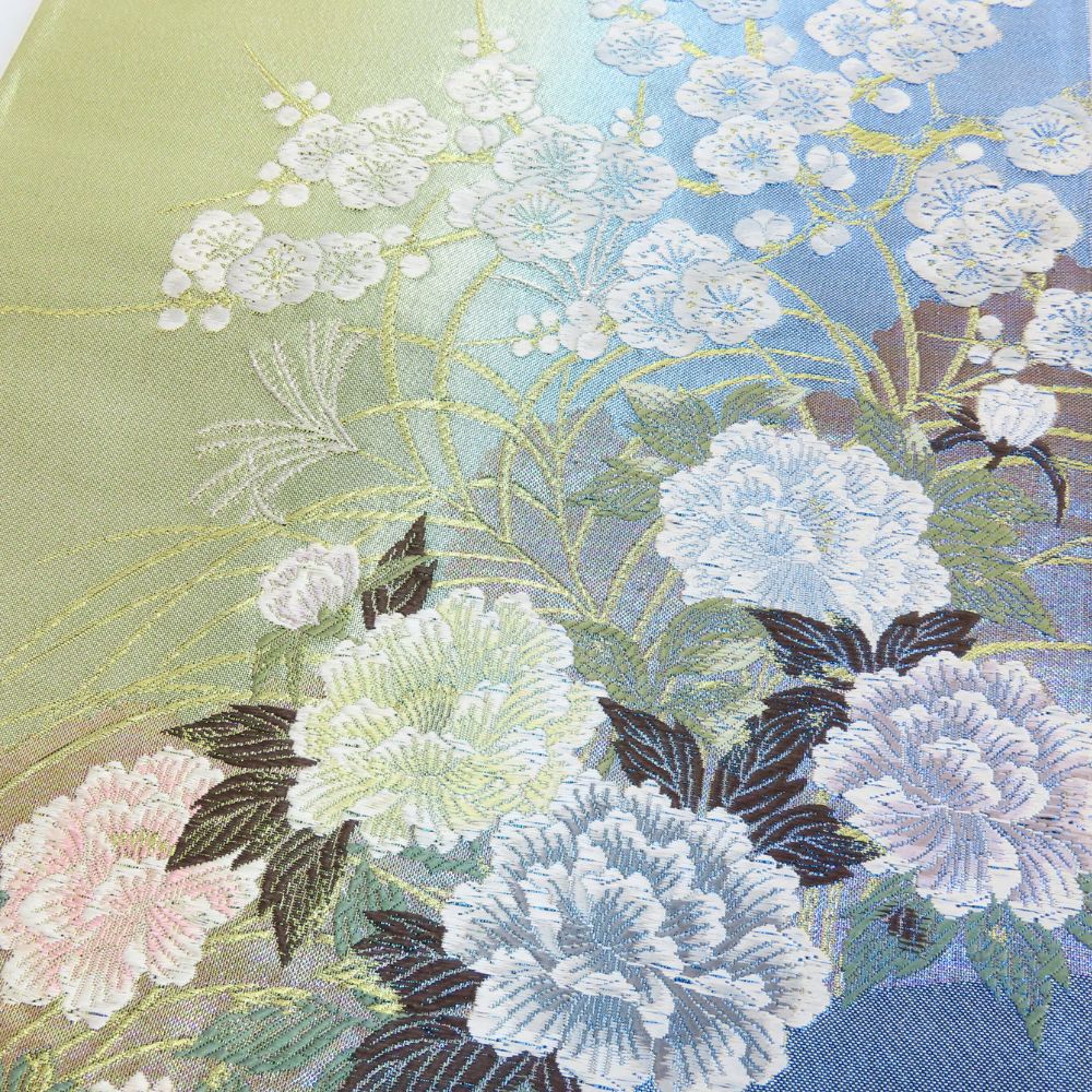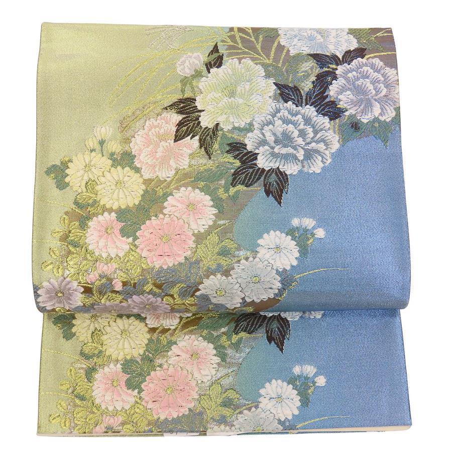| 品名 | 【中古】 袋帯 正絹(金銀糸除く) ブルー ゴールド ピンク フォーマル 花柄 レディース 女性 |