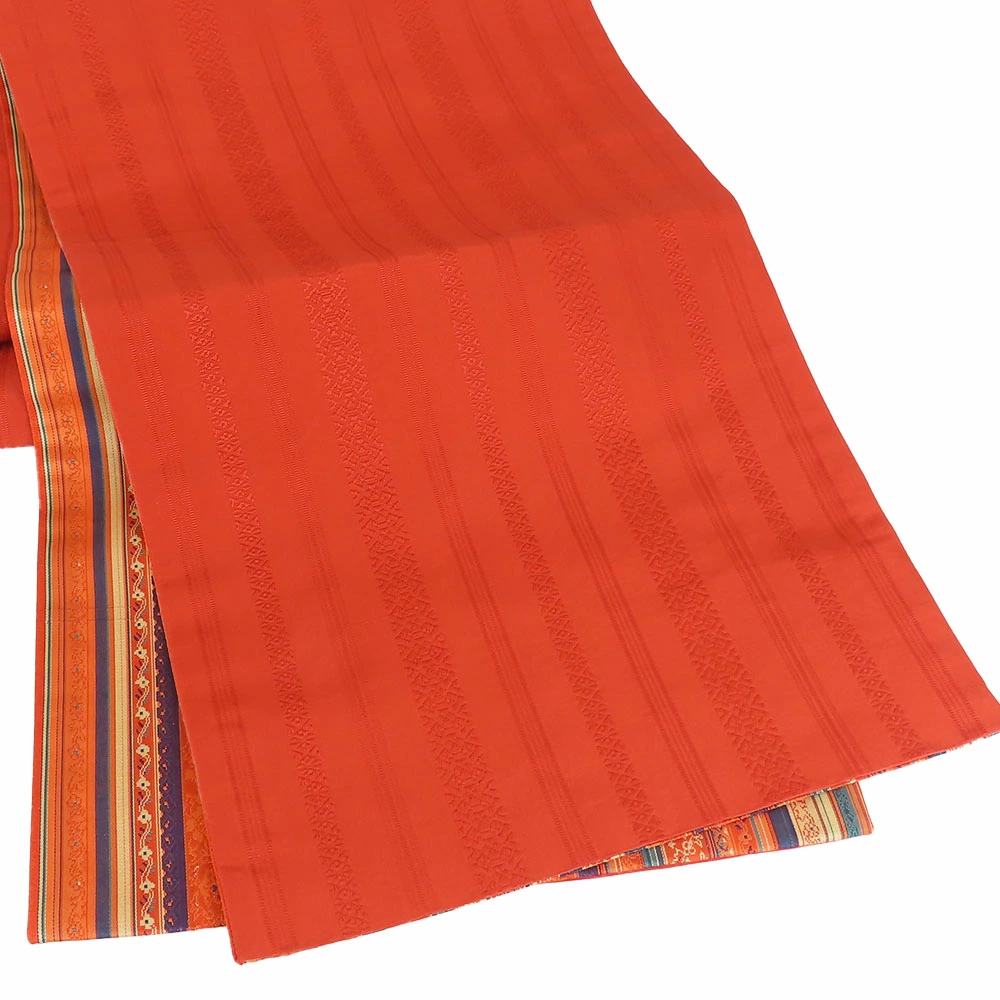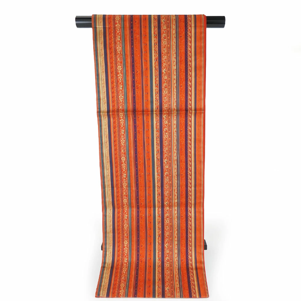 [20% OFF!! Rakuten Super Sale!!] [Used] Kyoto Fukuro Obi, Pure Silk (Gold and Silver Threads Excluded), Orange, Blue, Multicolor, Kimono, Japanese Clothing, Women's