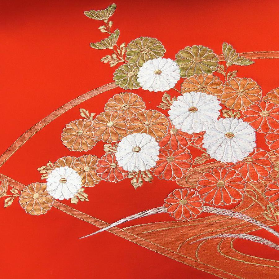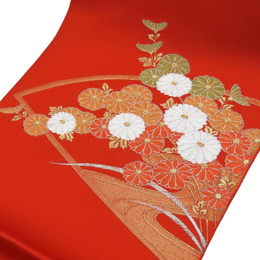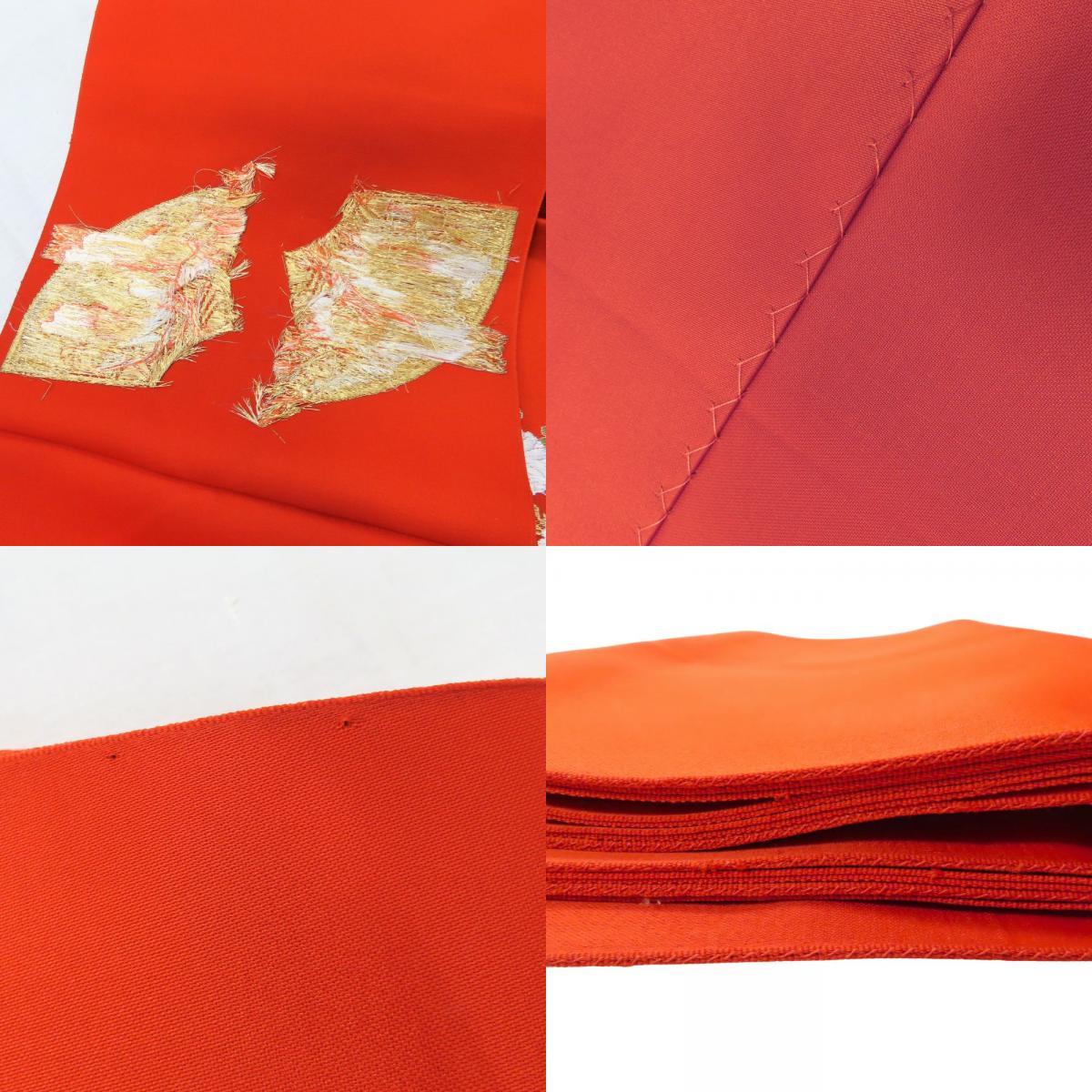 [20% OFF!! Rakuten Super Sale!!] [Used] Nagoya Obi, 8 Sun, Polyester, Vermilion and Orange, Pine Needle Pattern, Kimono, Women's