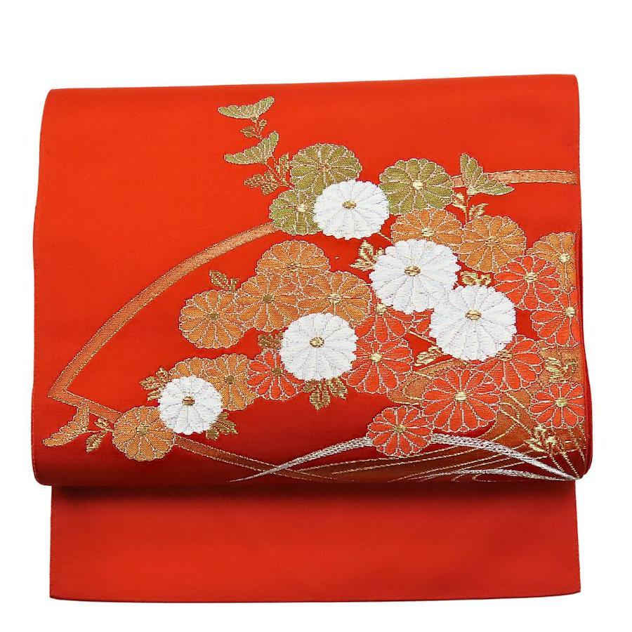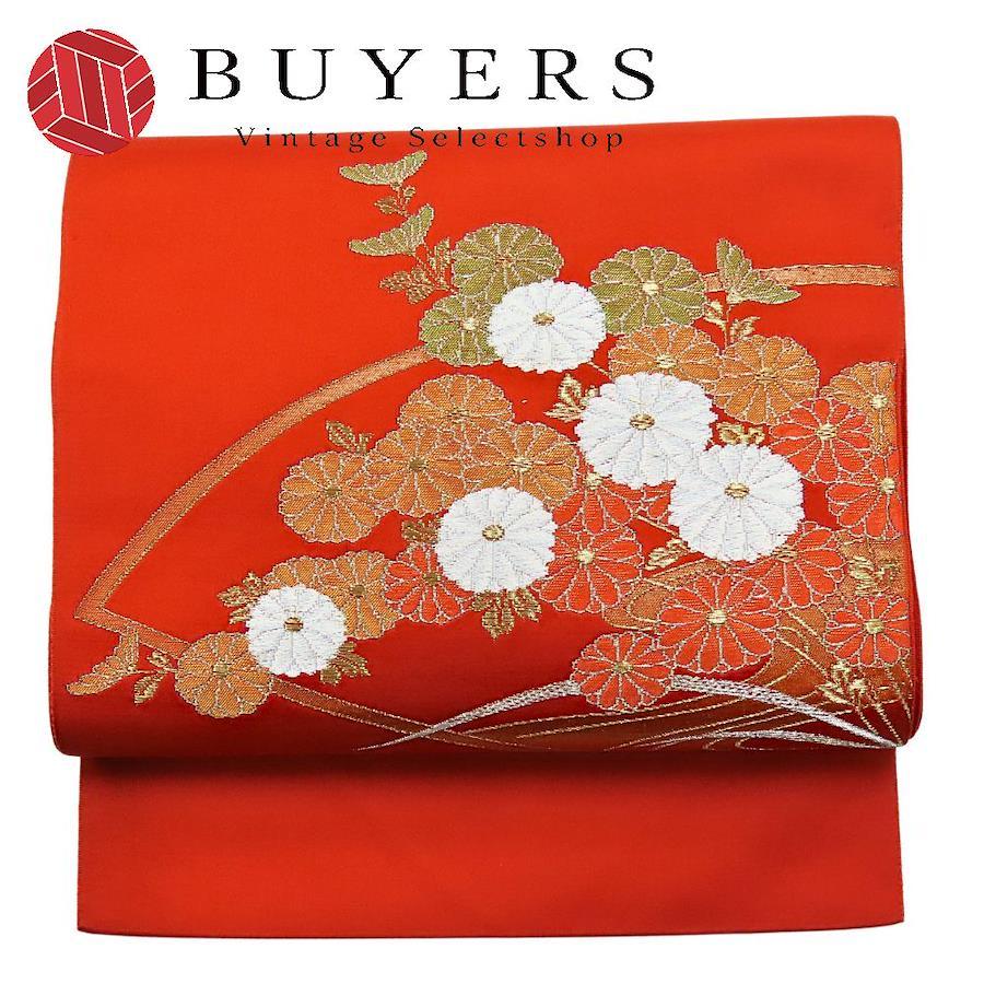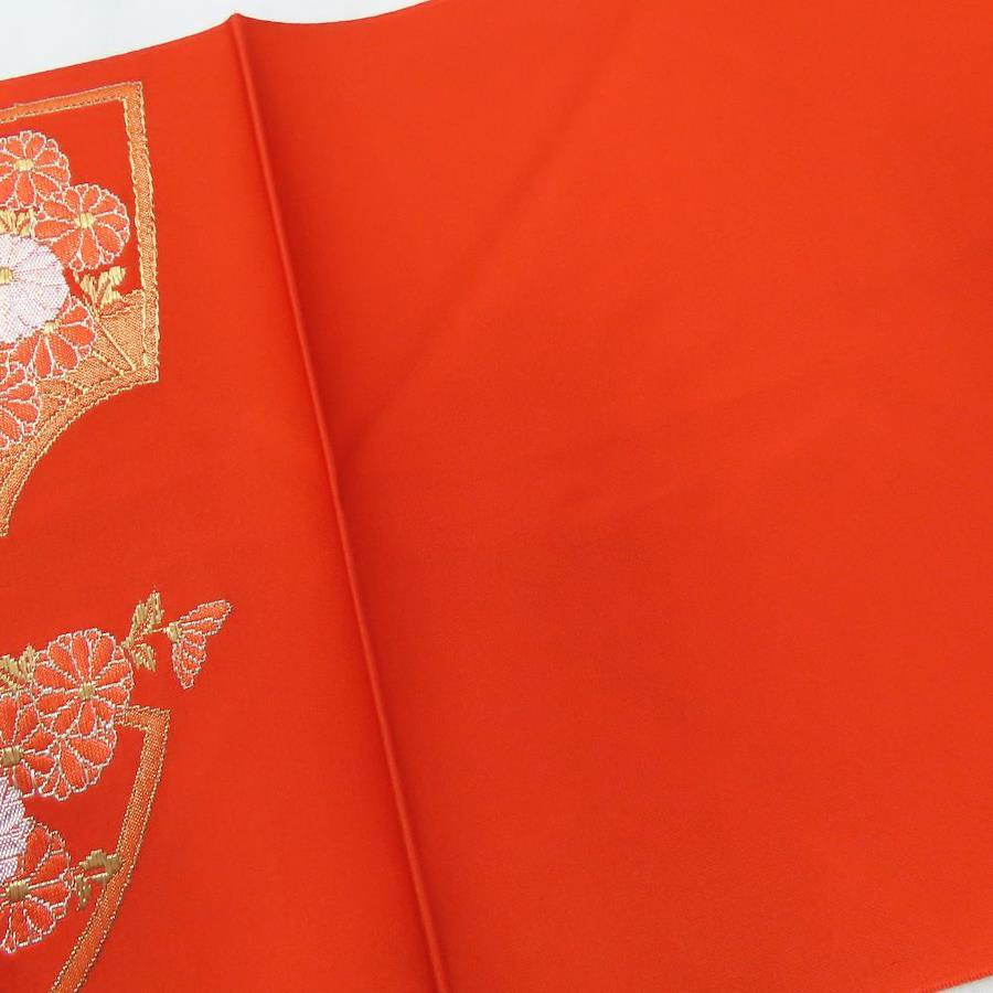 品名【中古】 名古屋帯 八寸 ポリエステル 朱色 オレンジ 松葉仕立て レディース 女性