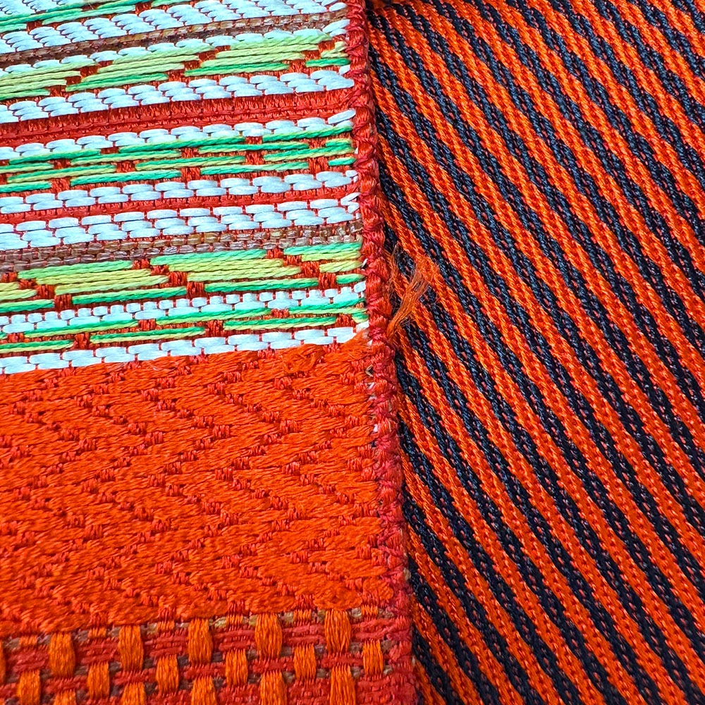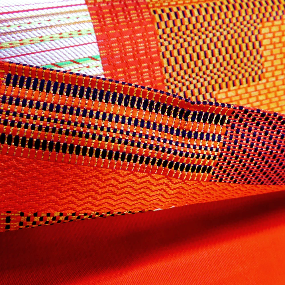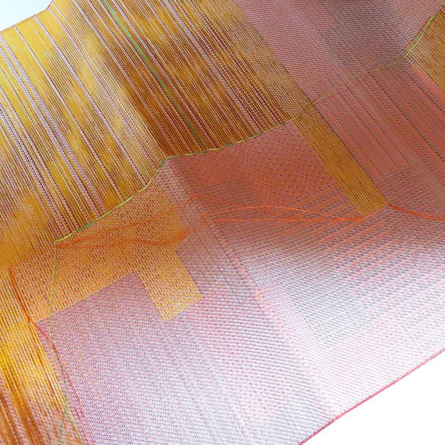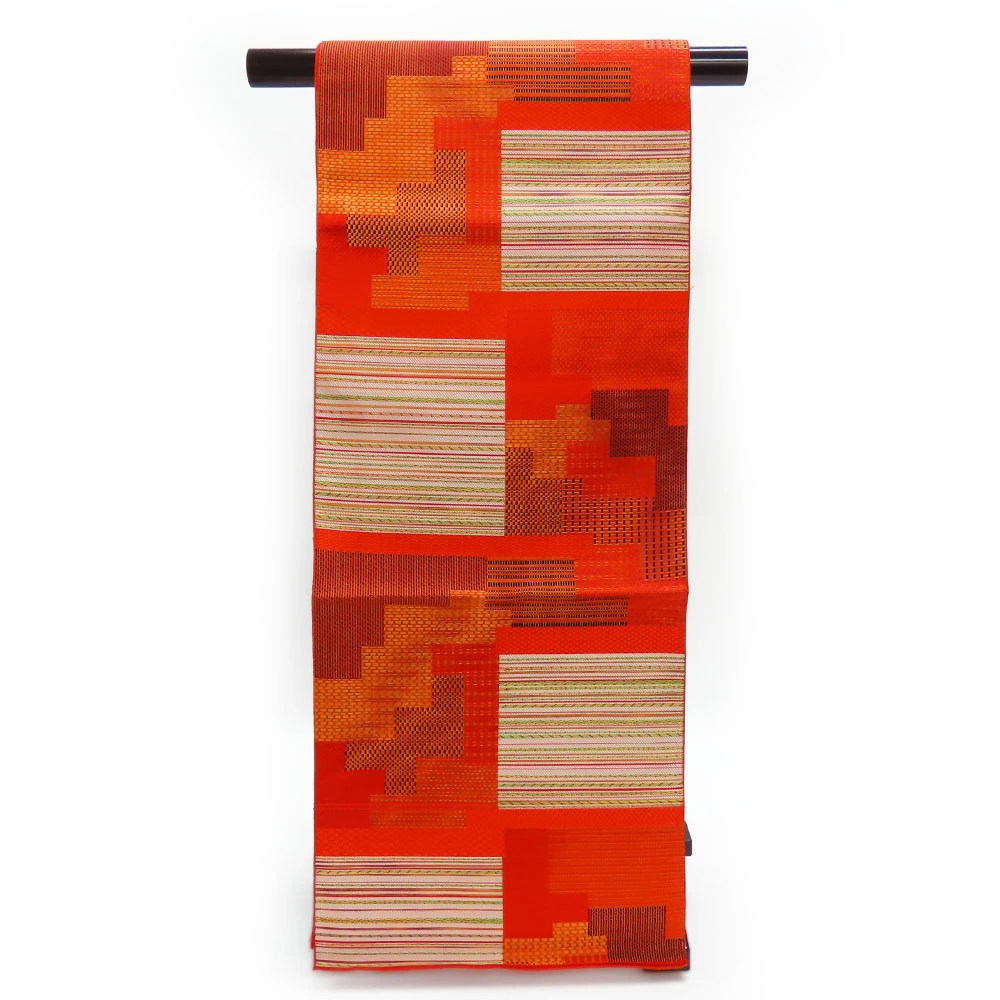 | サイズ | サイズ 全長:約 366.5cm 幅:約 30cm 帯の柄1:幾何学模様 重量:約440g |