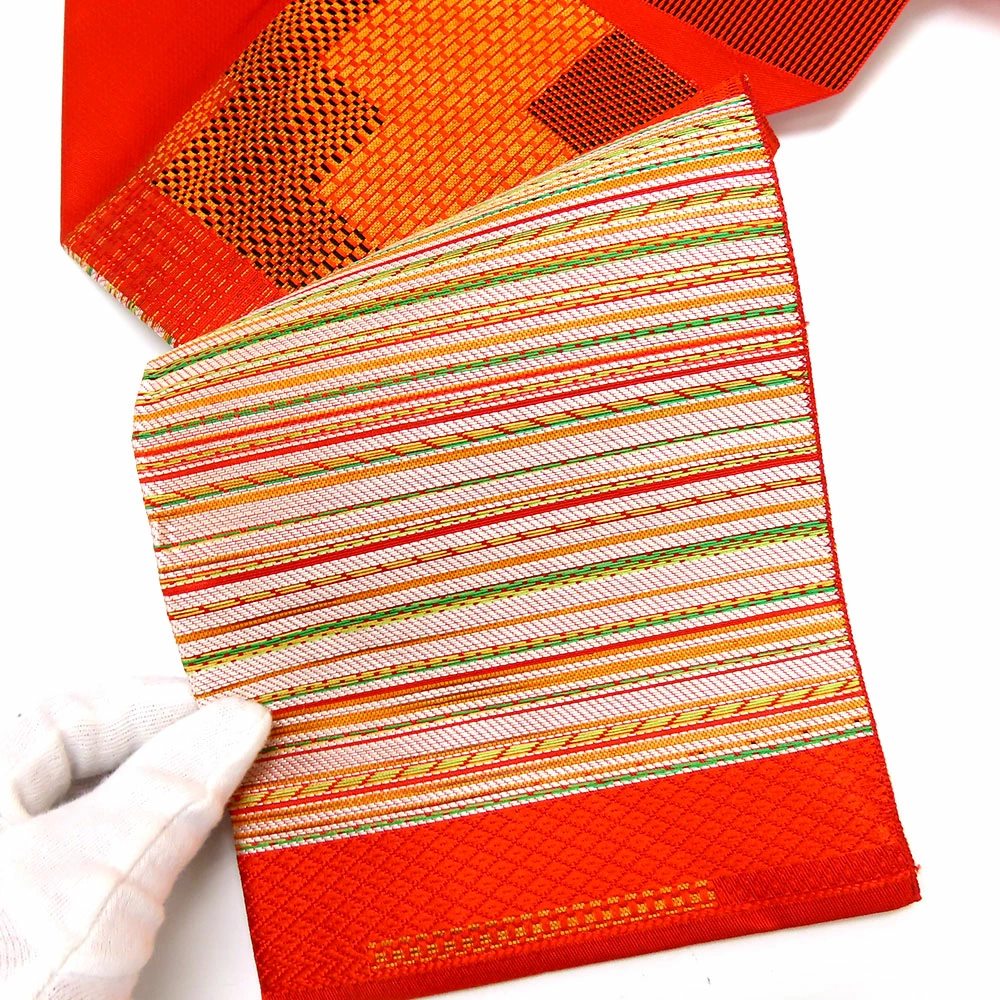 | 品名 | 【中古】 名古屋帯 正絹(金銀糸除く) 朱色 オレンジ マルチカラー 松葉仕立 和服 呉服 八寸 レディース 女性 |