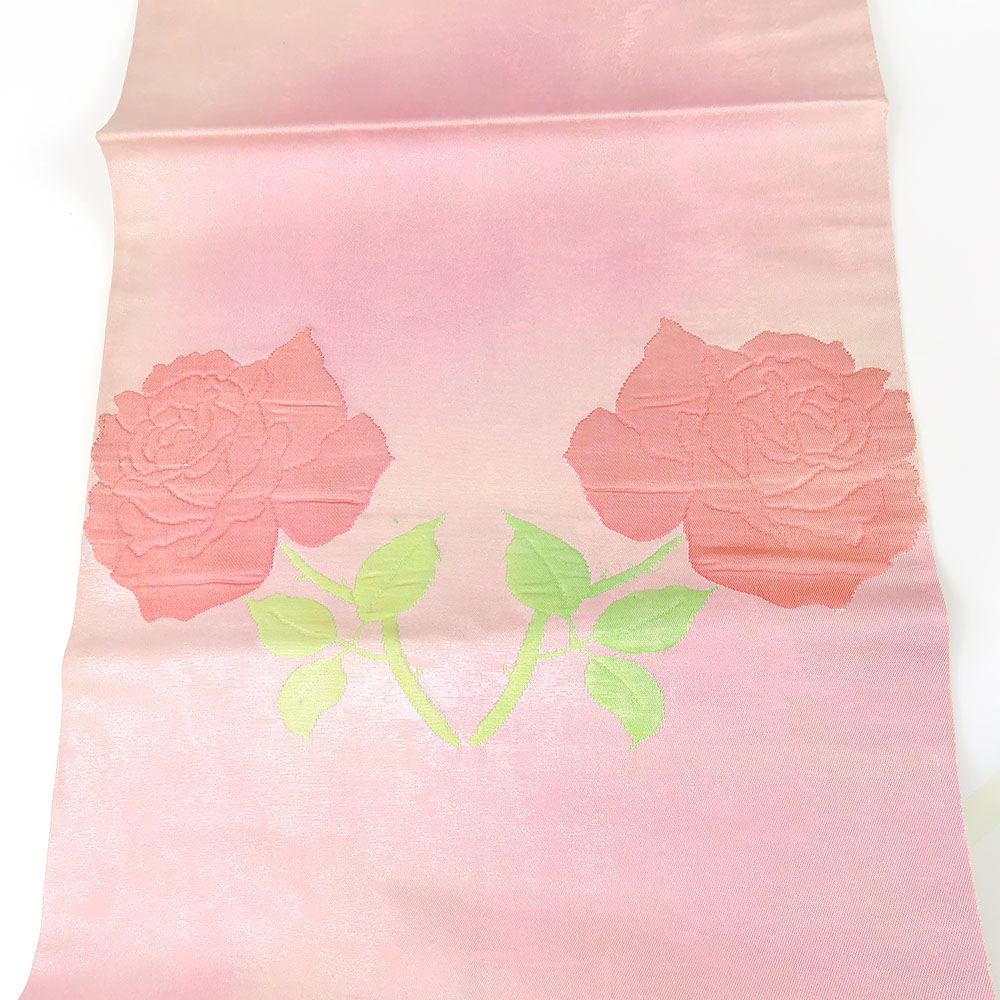 | サイズ | サイズ 全長:約 338cm 幅:約 30cm 帯の柄1:薔薇の花 重量:約580g |