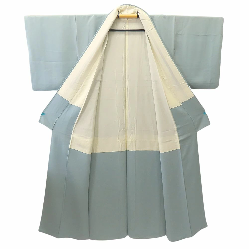 [20% OFF!! Rakuten Super Sale!!] [Used] Solid-Color Kimono, Pure Silk (Gold and Silver Threads Excluded), Blue-Gray, Single Crest, Stylish, Japanese Kimono, Women's
