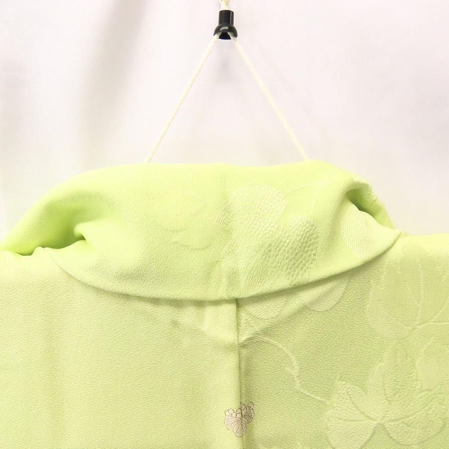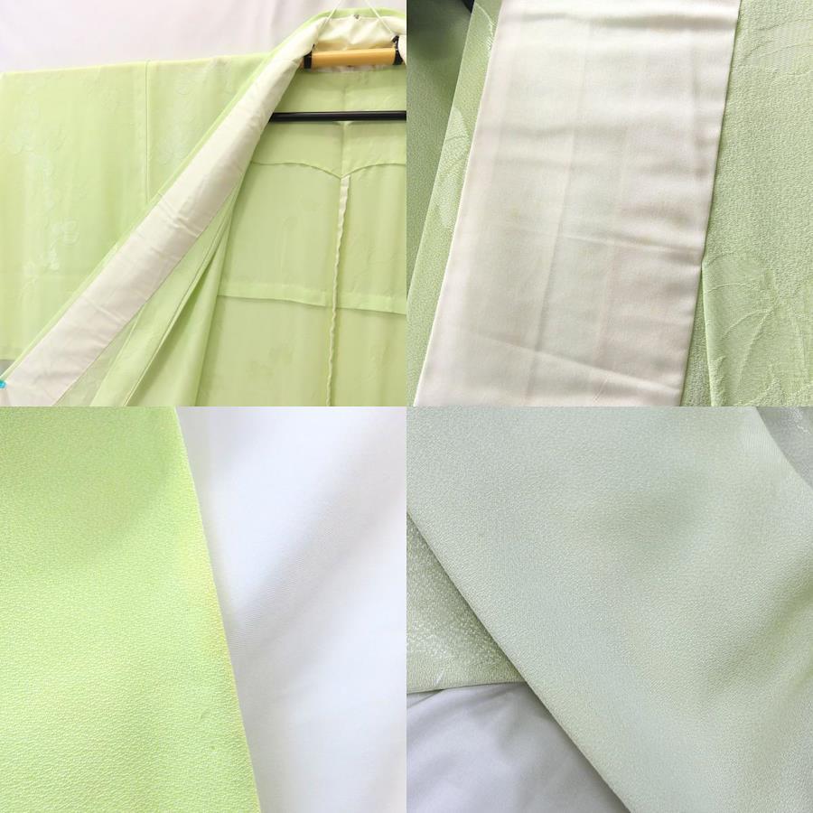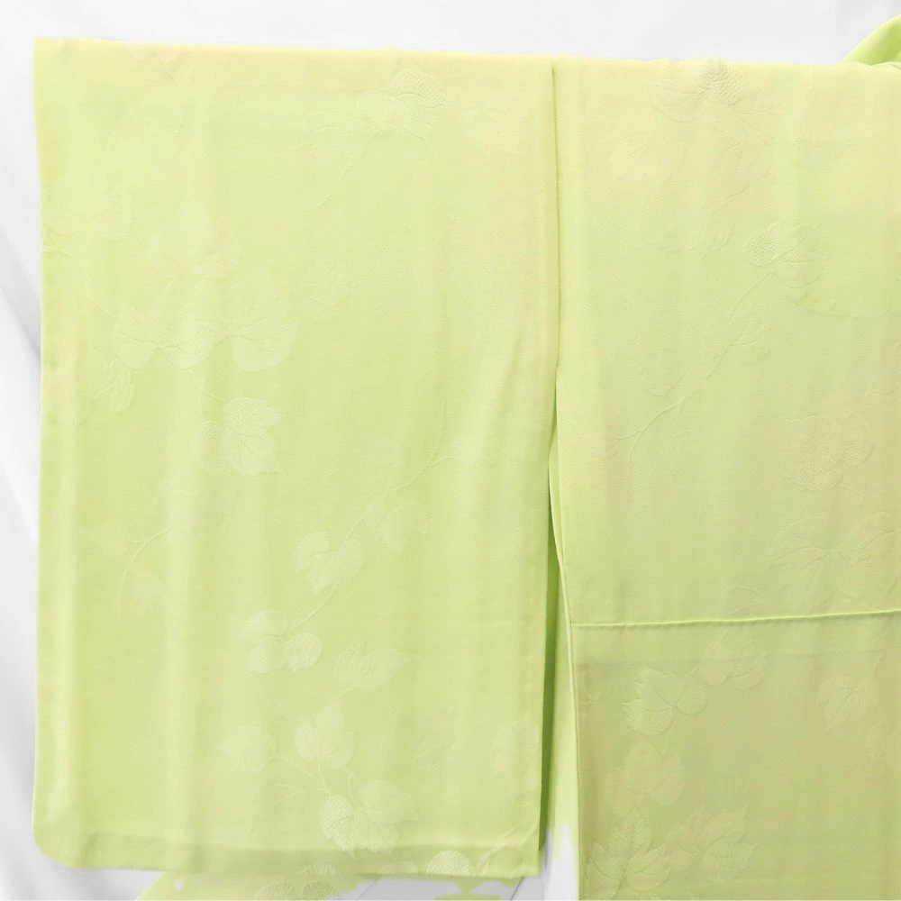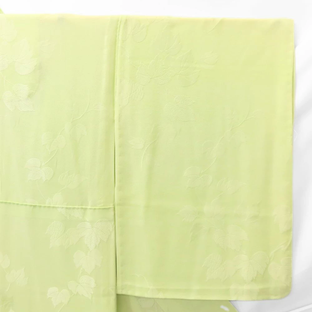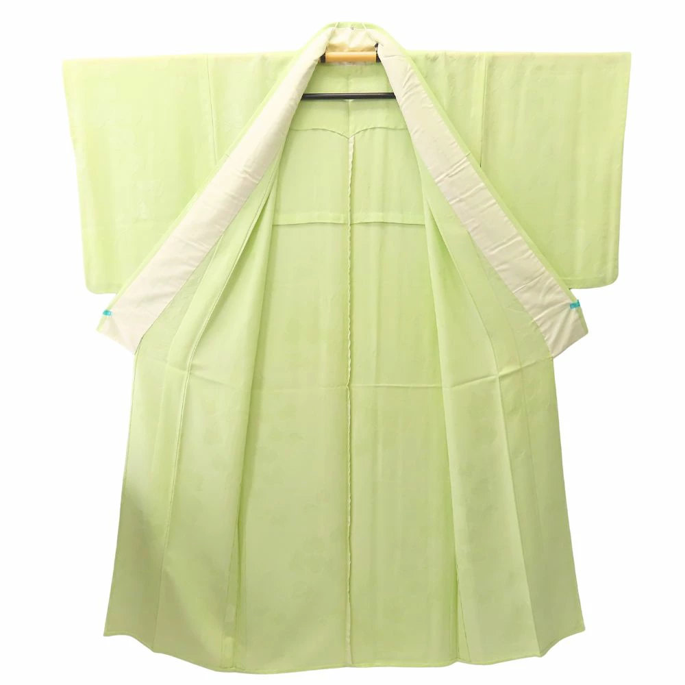 | 品名 | 【中古】 色無地 正絹(金銀糸除く) ライトグリーン系 唐草模様 一つ紋 単衣 レディース 女性 |