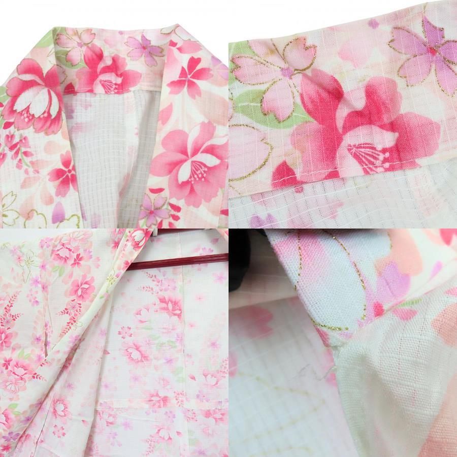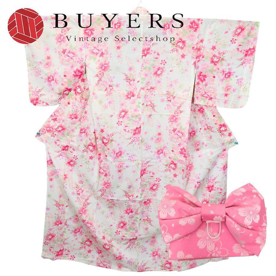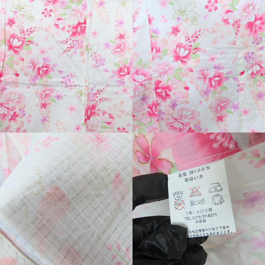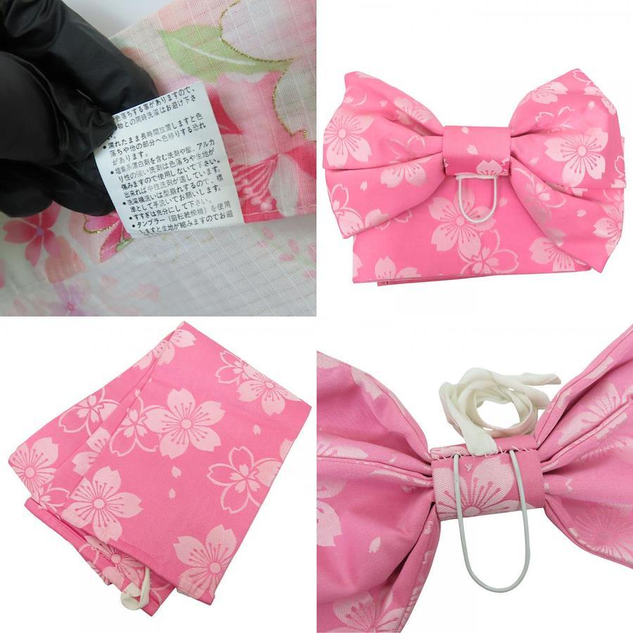 | 品名 | 【中古】 浴衣 セット 作り帯 桜柄 綿 ポリエステル ホワイト ピンク ラメ入り リボン かわいい レディース 女性 |