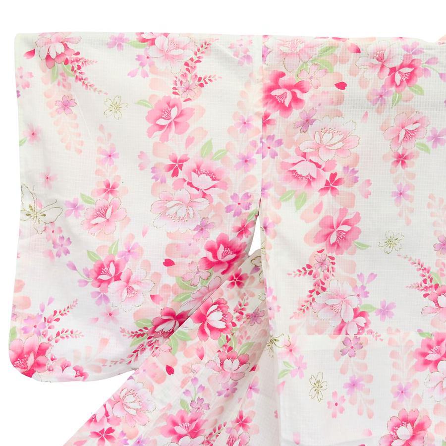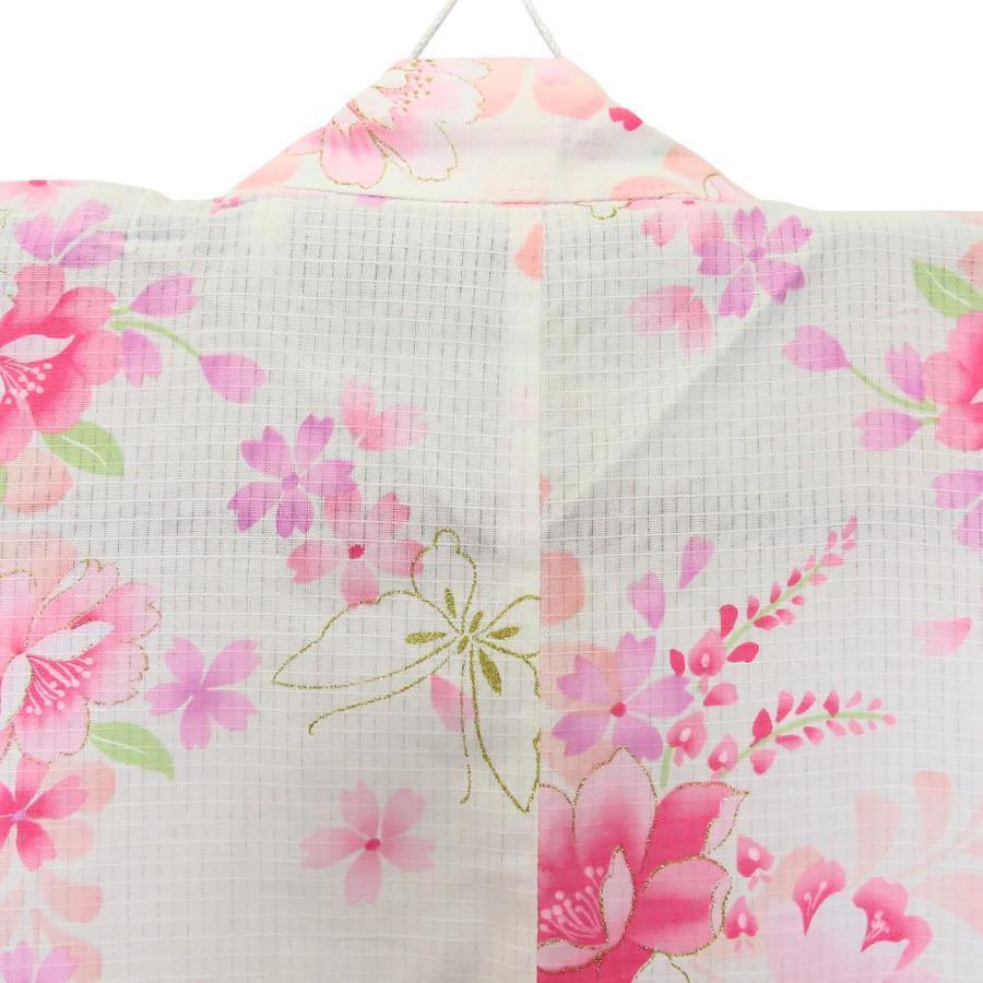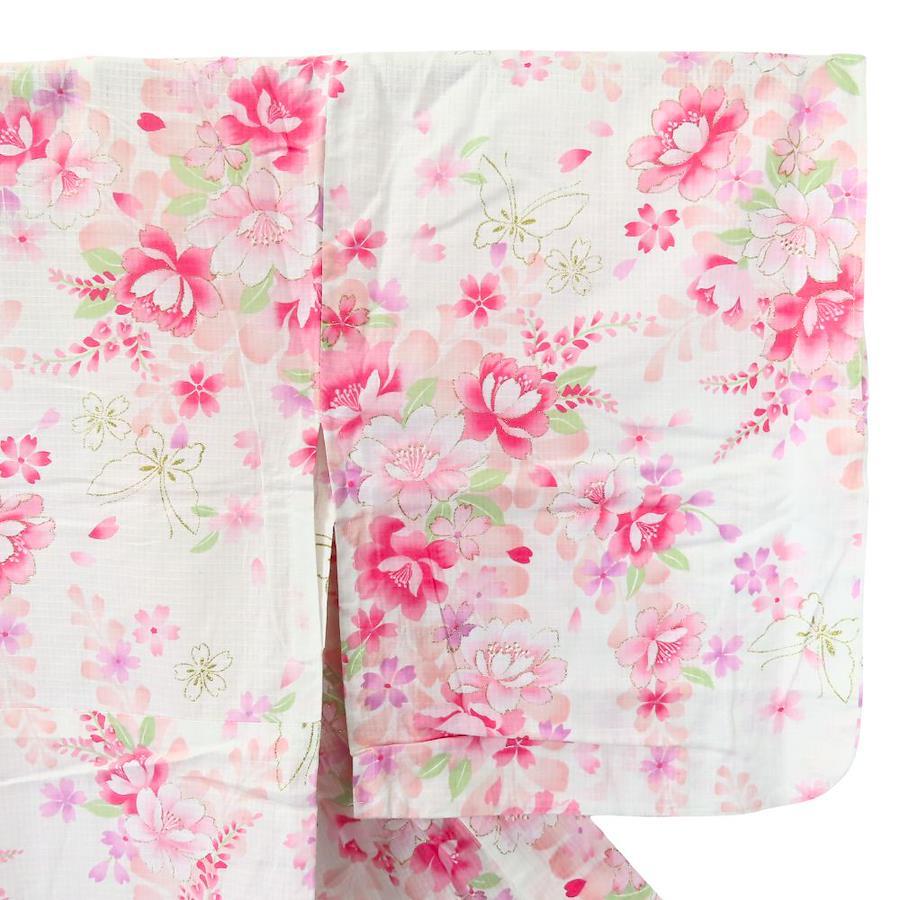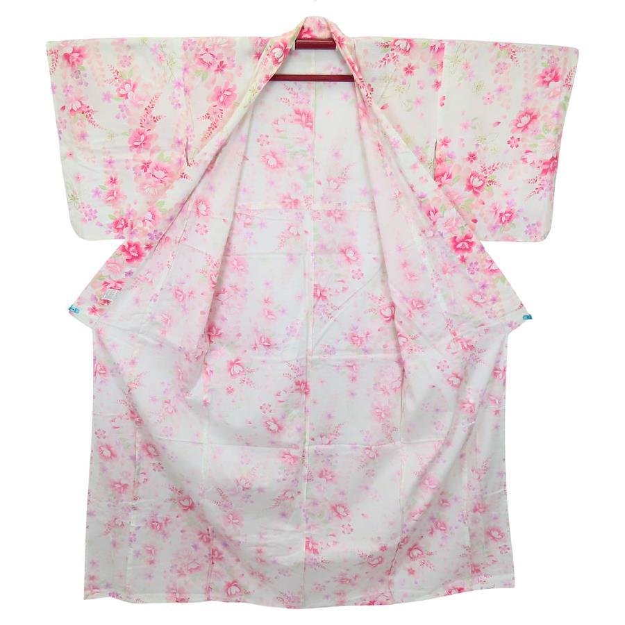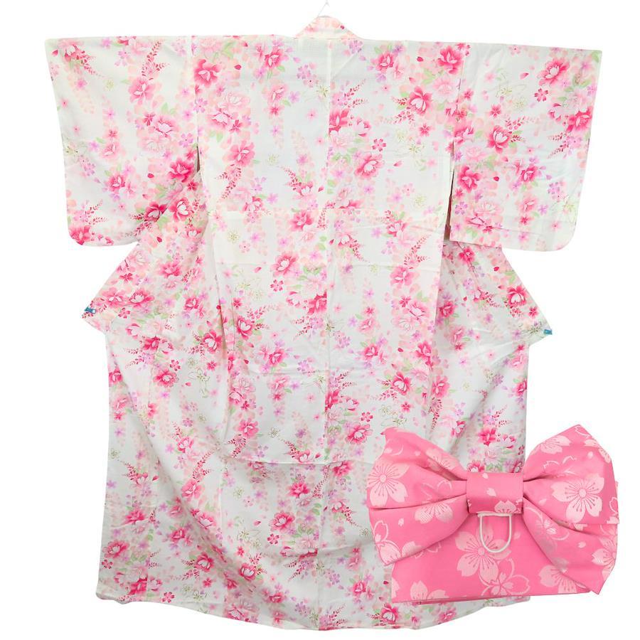 | 品名 | 【中古】 浴衣 セット 作り帯 桜柄 綿 ポリエステル ホワイト ピンク ラメ入り リボン かわいい レディース 女性 |