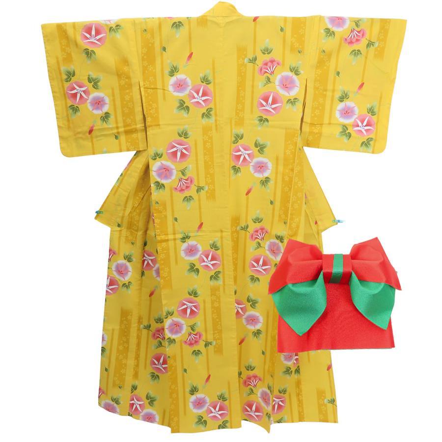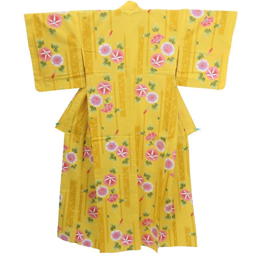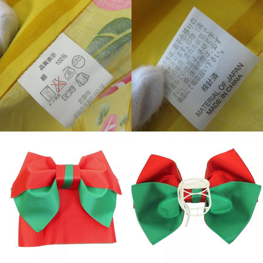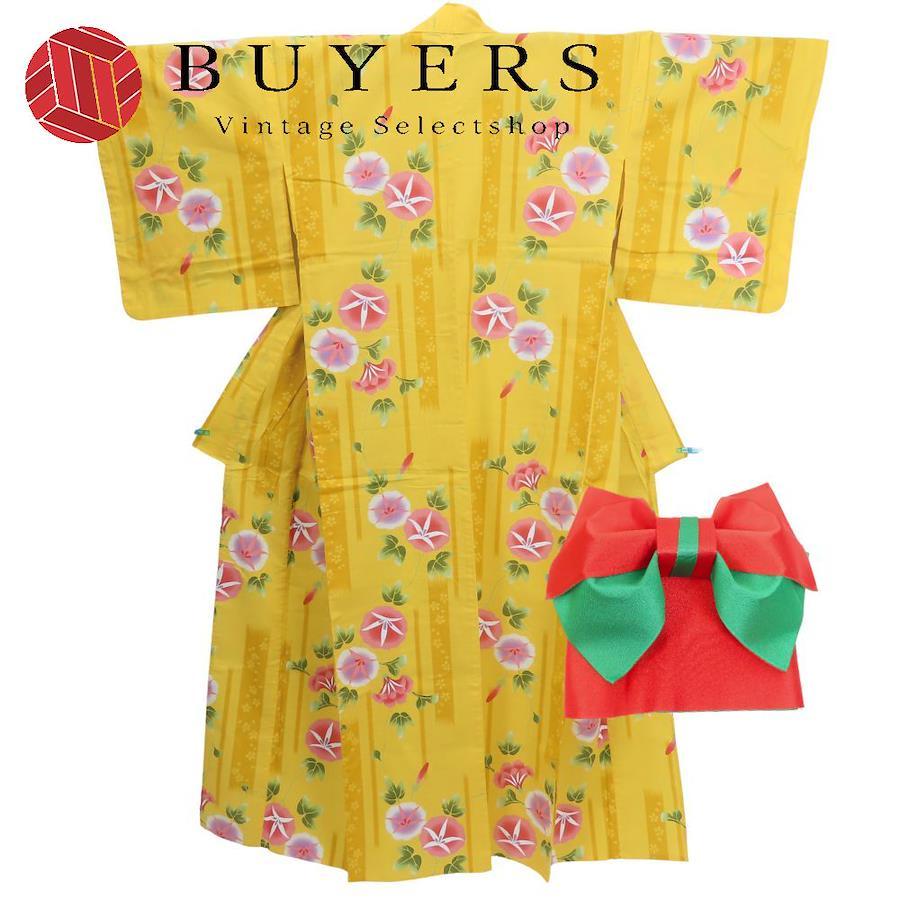 | 品名 | 【中古】 浴衣 セット 作り帯 綿 ポリエステル イエロー レッド グリーン 草花柄 かわいい レディース 女性 |
