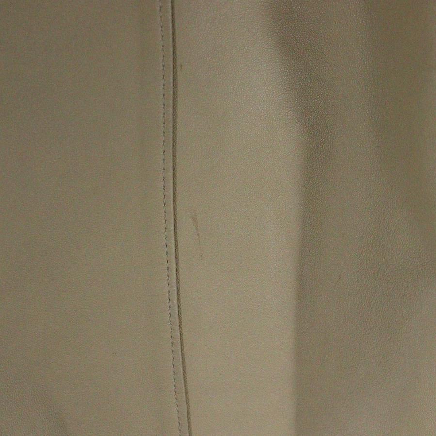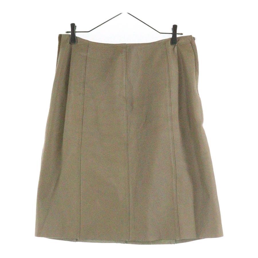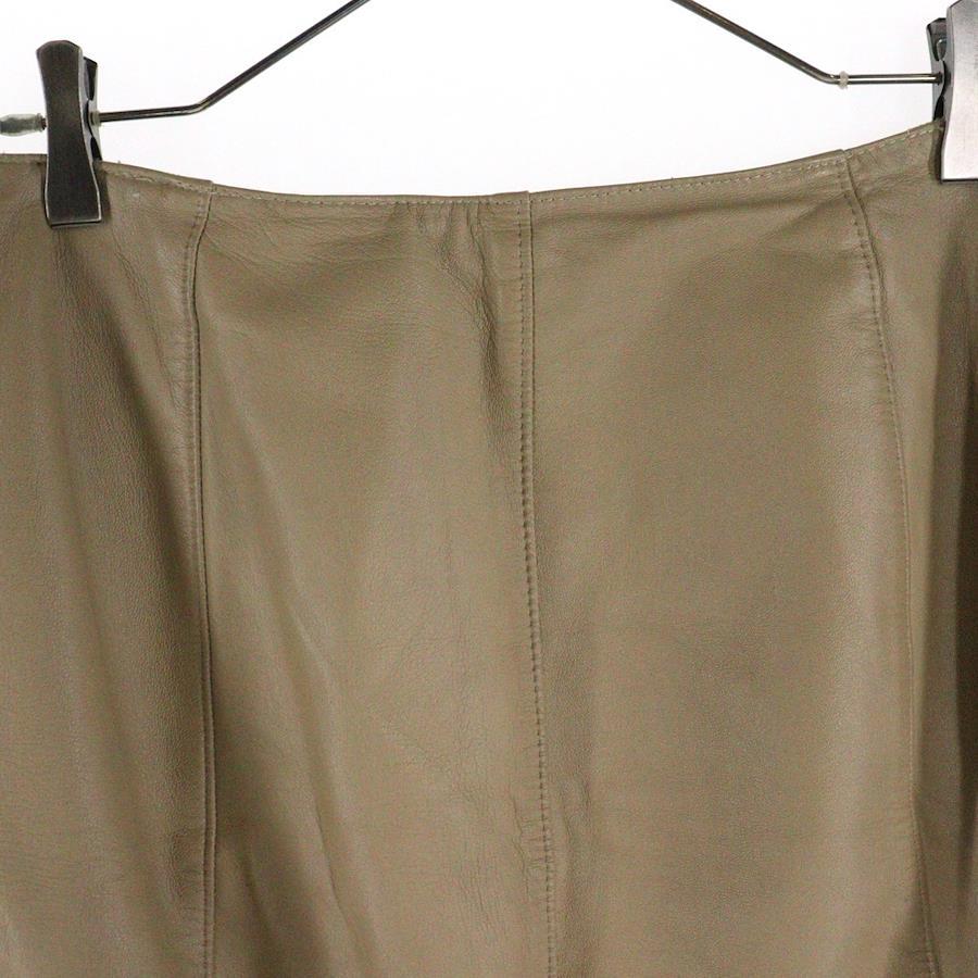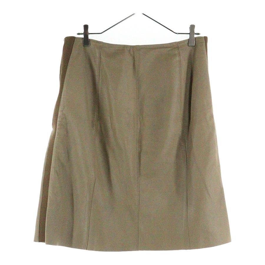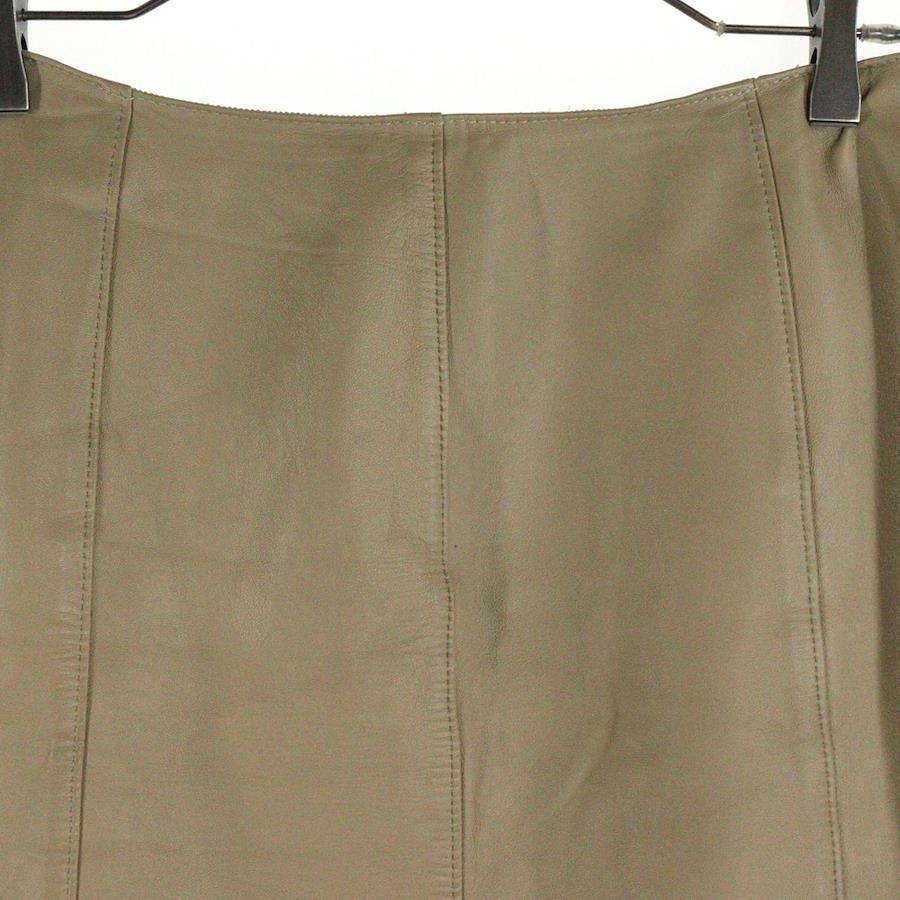 [モデル]ニット切り替え ラムスキン レザー ミディアム フレア スカート ベージュ レディース