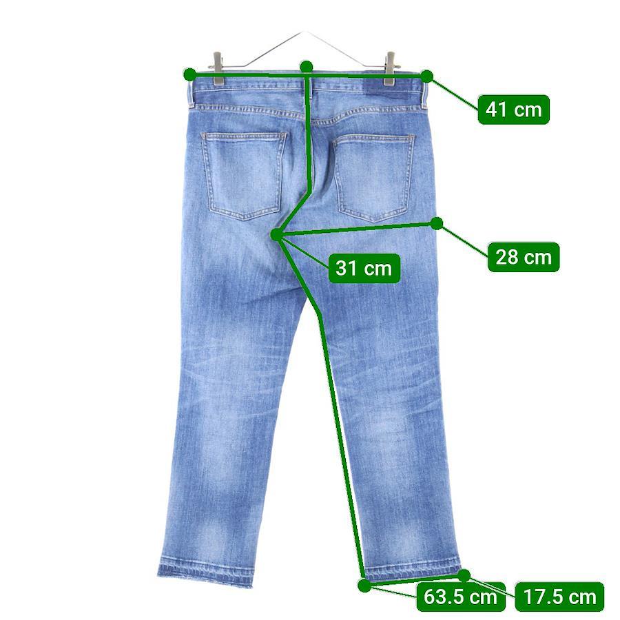 [サイズ]ウエスト:41センチ ワタリ:28センチ 股上:31センチ 股下:63.5センチ 裾幅:17.5センチ