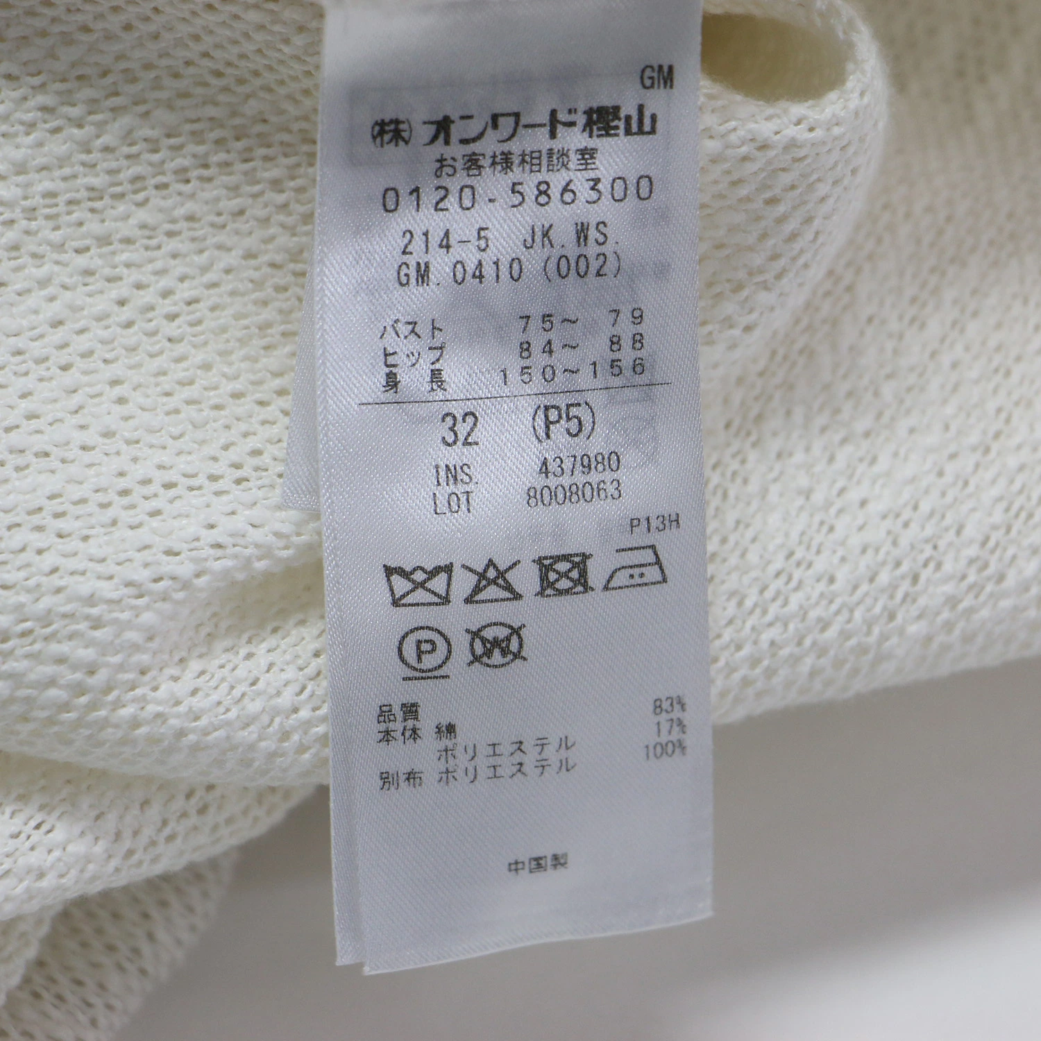 | サイズ | 32(XS)着丈約41.5cm(背中襟下から)×身幅約45.5cm(脇下から)×肩幅約42.5cm×袖丈約45.5cm(肩上から) |