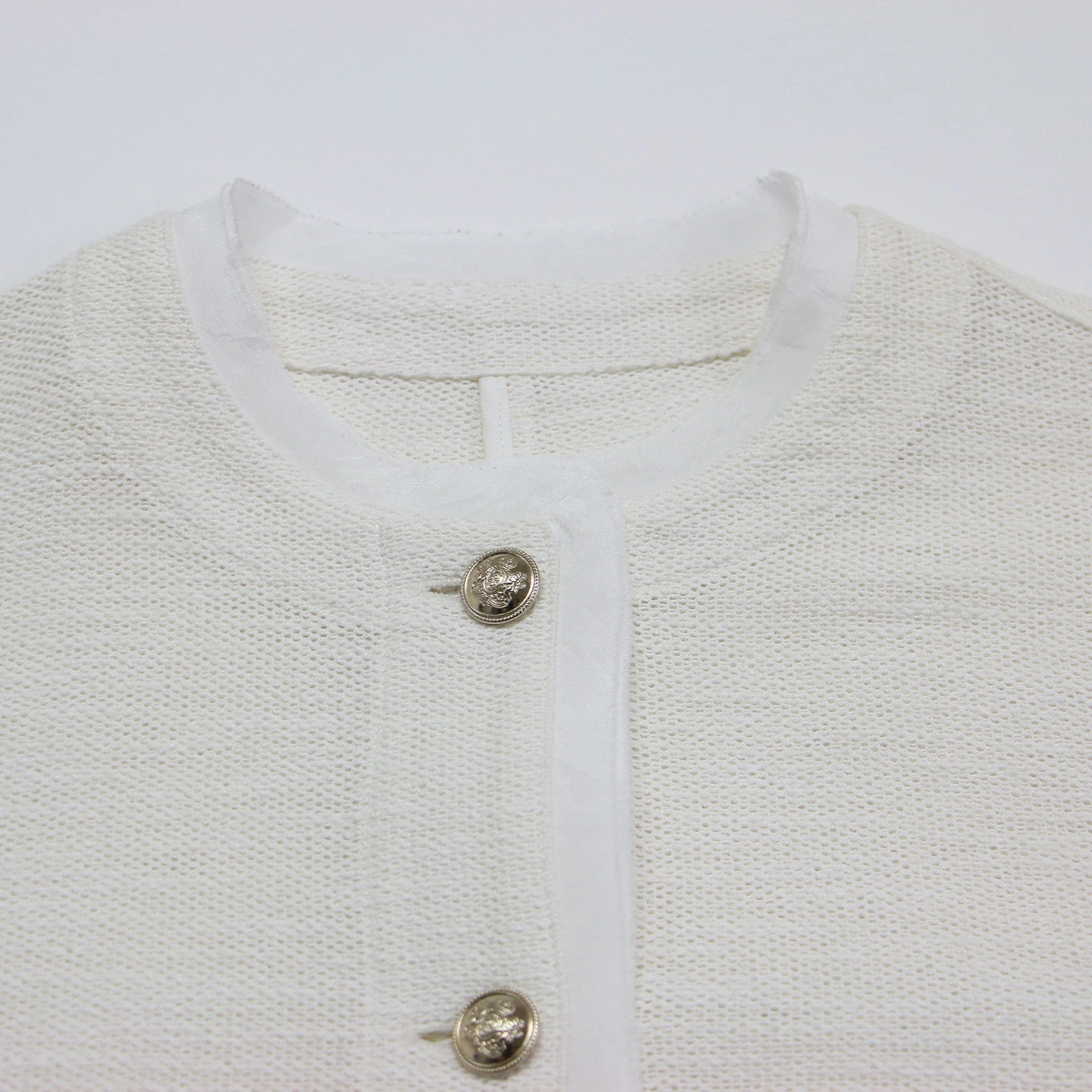 | 商品説明 | ◆コンパクトなフォルムに端に艶のある別布がアクセント ◆ツイードのようなざっくりとした表面感のカラミ素材を使用 ・フロントボタン開閉 ・ポケットあり |