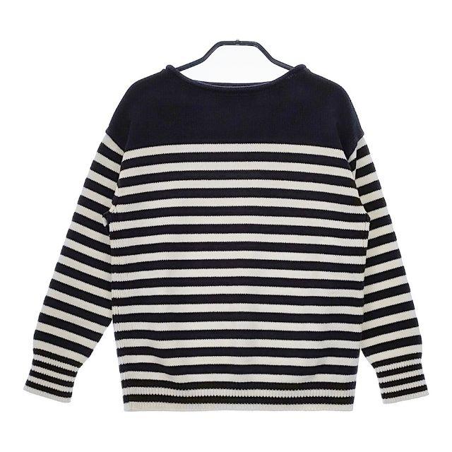 23ku Roll Collar Marine Stripe Sweater Knit in White and Navy, Women's, Pre-owned, 23ku, 5-0601M