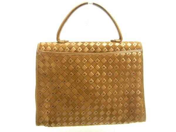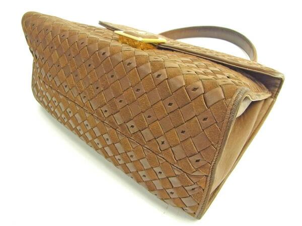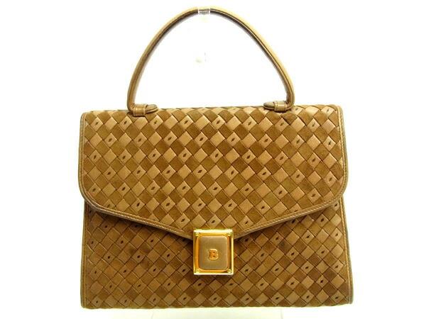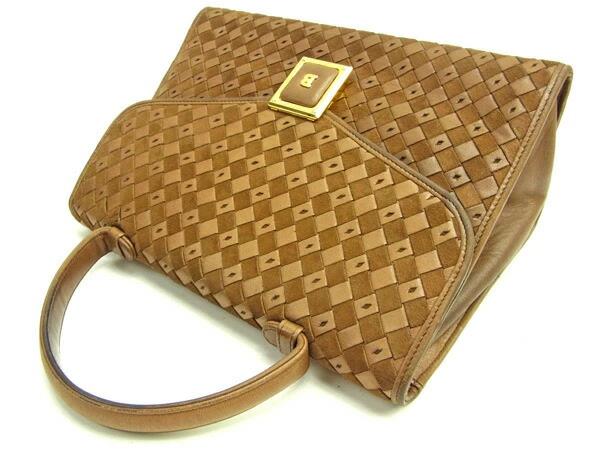 [24% OFF Coupon] Bally Braided Handbag with B Mark, Brown and Gold, Pre-Owned, Women's