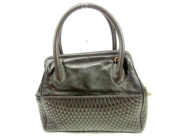 [24% OFF Coupon] BALLY Quilted Handbag with Mini Logo Plate, Dark Brown and Gold, Women's, Pre-Owned