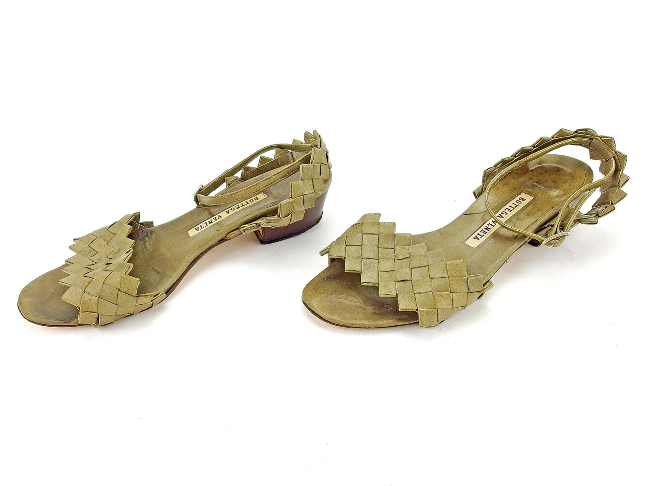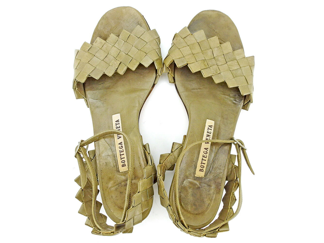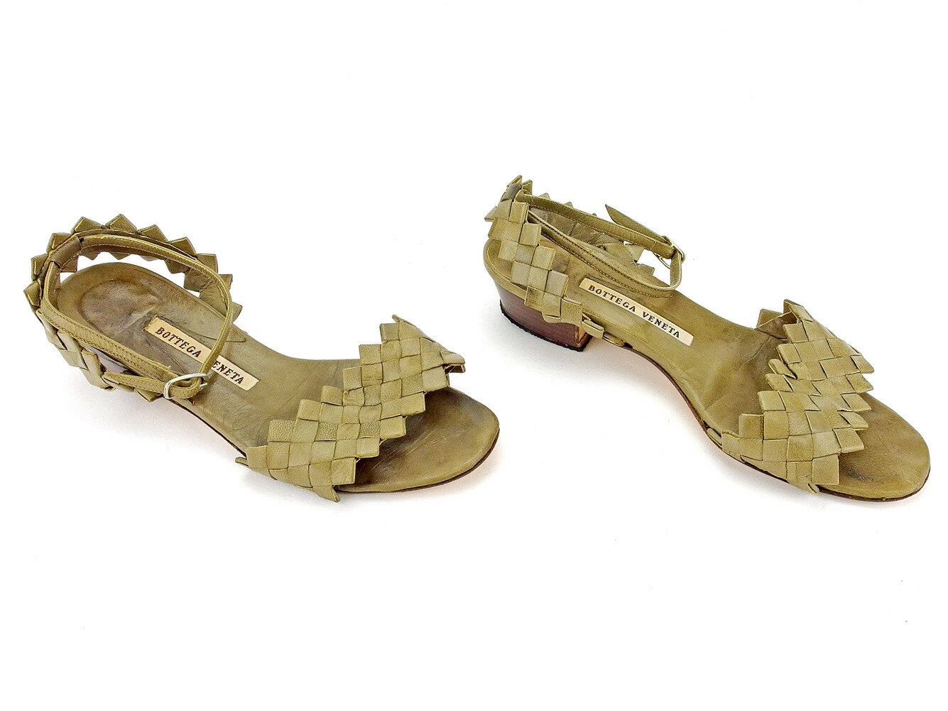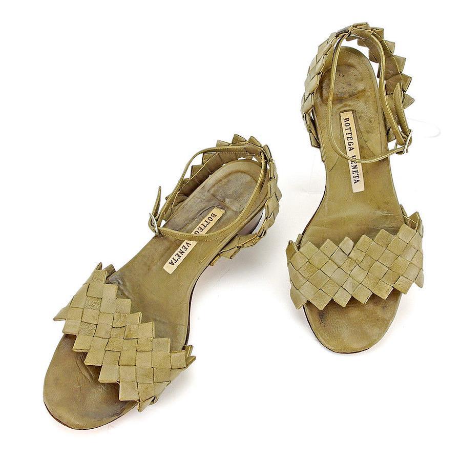 [24% OFF Coupon] Bottega Veneta Intrecciato #4 Ankle Strap Sandals in Greige, Women's, Pre-owned