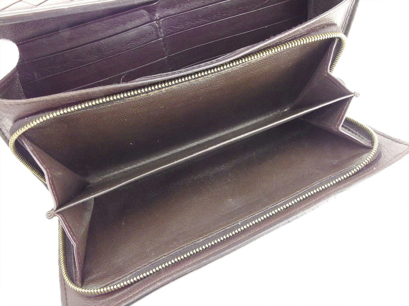 | コンディション | 全体の状態詳細:使用感がありますが、まだまだお使いいただけます。スレ(内側&札入れ&小銭入れもあり) 傷 汚れ(札入れ&小銭入れ&カード入れもあり) 黒ずみ 劣化(ファスナープル革付け根) 金具ハゲ コバハガレ&ヒビ割れ(角&ファスナープル革) 切れ(編み込み部分2ヶ所程) 湿り気小(カード入れ) など使用感があります。 |