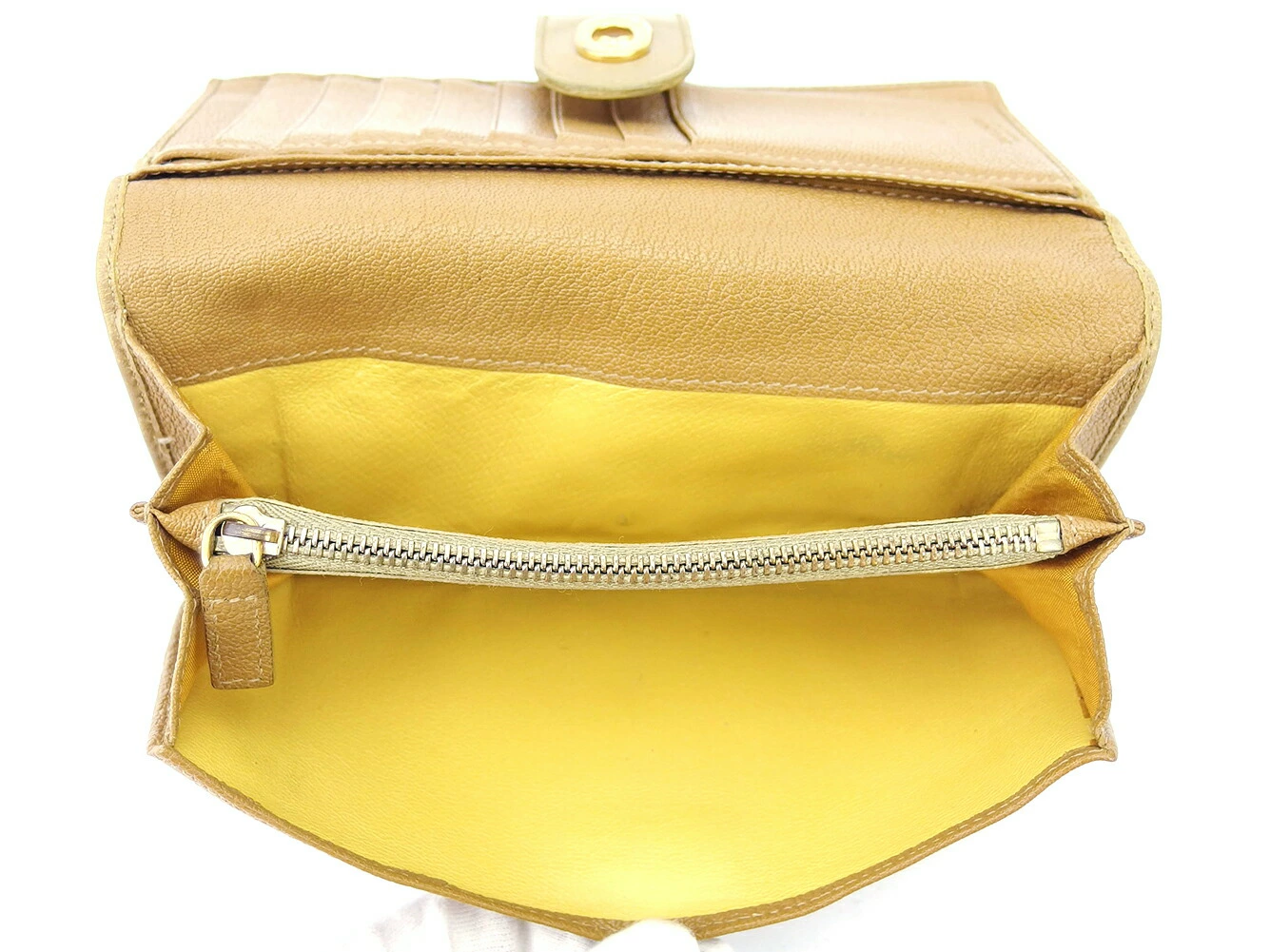 | コンディション | 全体の状態詳細:まだまだお使いいただけます。 社外リペア跡(スレ色着色)。ファスナー式小銭入れに、スレ(強)&黒ずみあり。その他 スレ&汚れ(内側&札入れ&カード入れ&ポケットもあり) 角スレ 金具ハゲ ほつれ&破れ(角一部) コバヒビ割れ(札入れの方フラップ&ファスナープル革) など使用感があります。 |