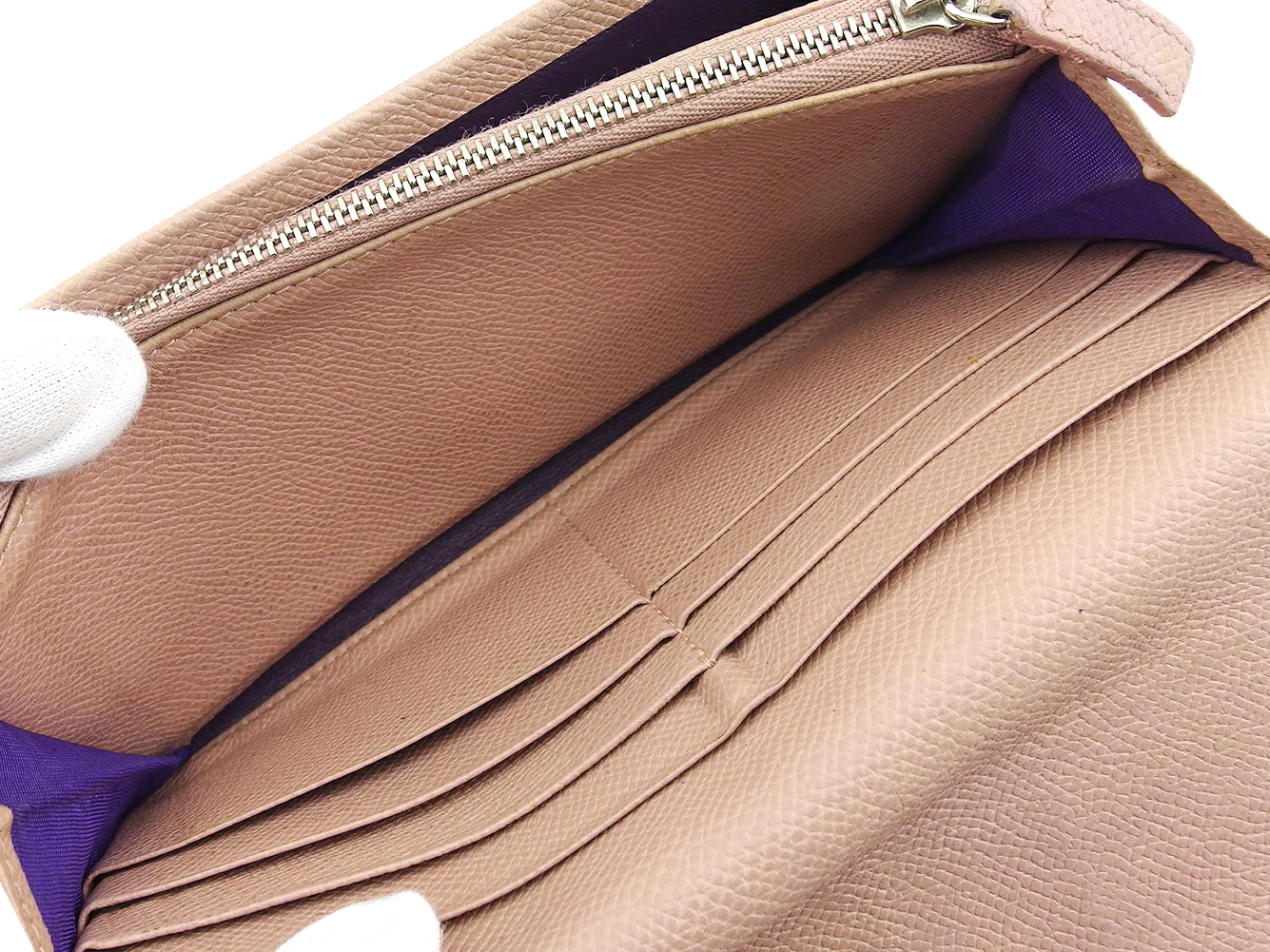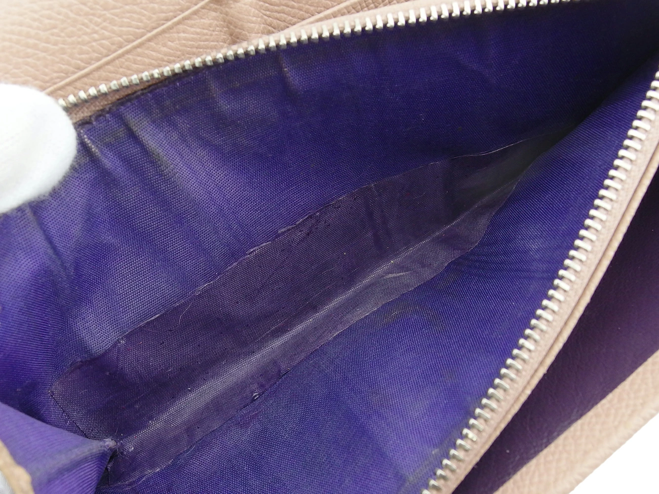 | コンディション | 全体の状態詳細:まだまだ十分にお使いいただけます。社外リペア跡(スレ色着色、角キレコーティング、小銭入れ底部破れ当て布貼り付け)あり。その他 スレ&汚れ(内側&札入れ&小銭入れ&カード入れ&ポケットもあり) シミ(小銭入れ) コバヒビ割れ(角&ファスナープル革) 金具傷 などの使用感があります。 |