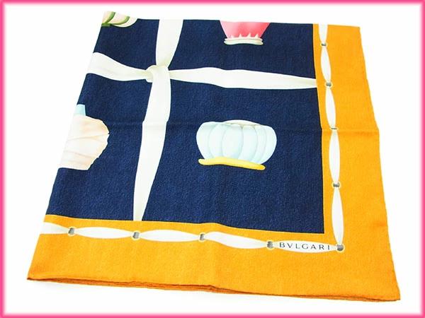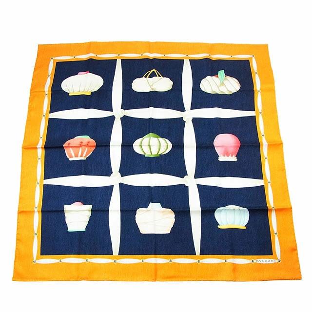 [24% OFF Coupon] BVLGARI Scarf, Fashion Item Pattern, Navy x Orange, Women's, Pre-owned