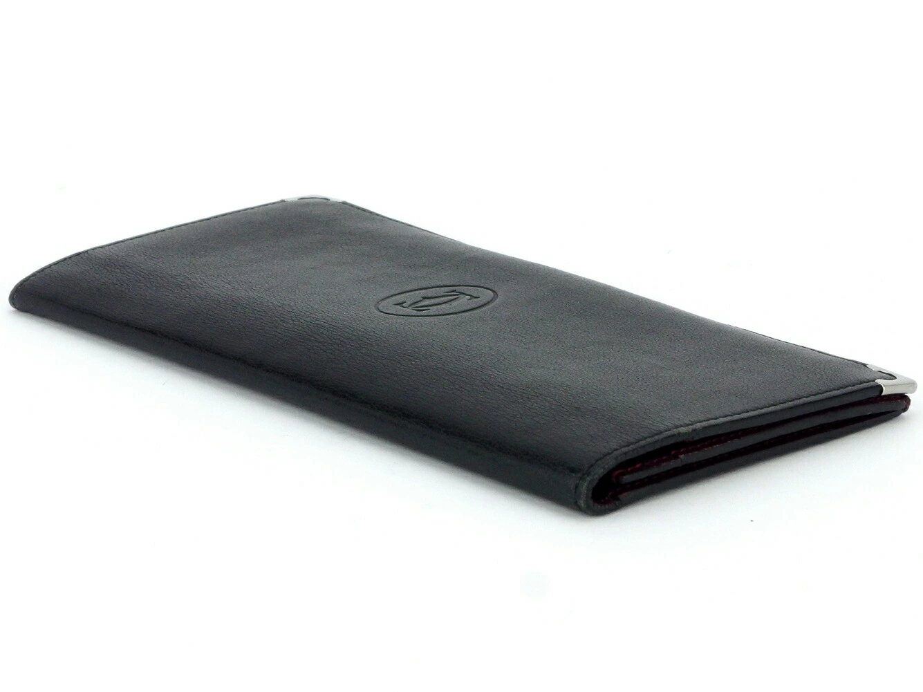 [24% OFF Coupon] Cartier Cabochon Wallet, Black, Bordeaux, Silver, Men's, Pre-owned