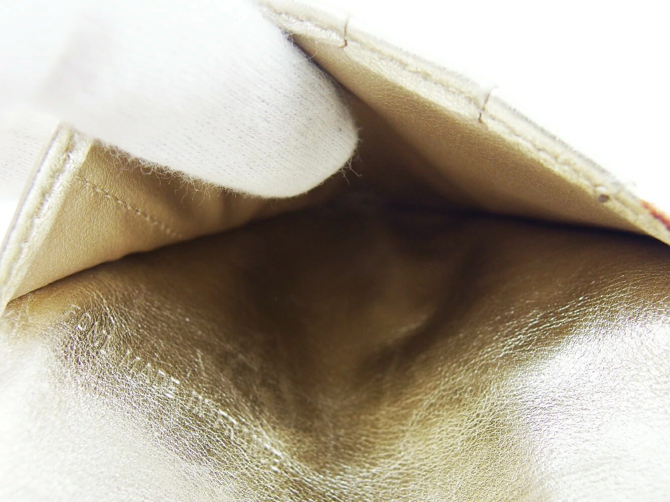 社外リペア跡(スレ色着色)あり。その他 スレ&汚れ(内側&札入れ&小銭入れ&ポケットもあり) 傷(内側&小銭入れもあり) 金具傷・ハゲ 表面ヒビ割れ(折り曲げ部分) ラメハガレ小 などの使用感があります。
