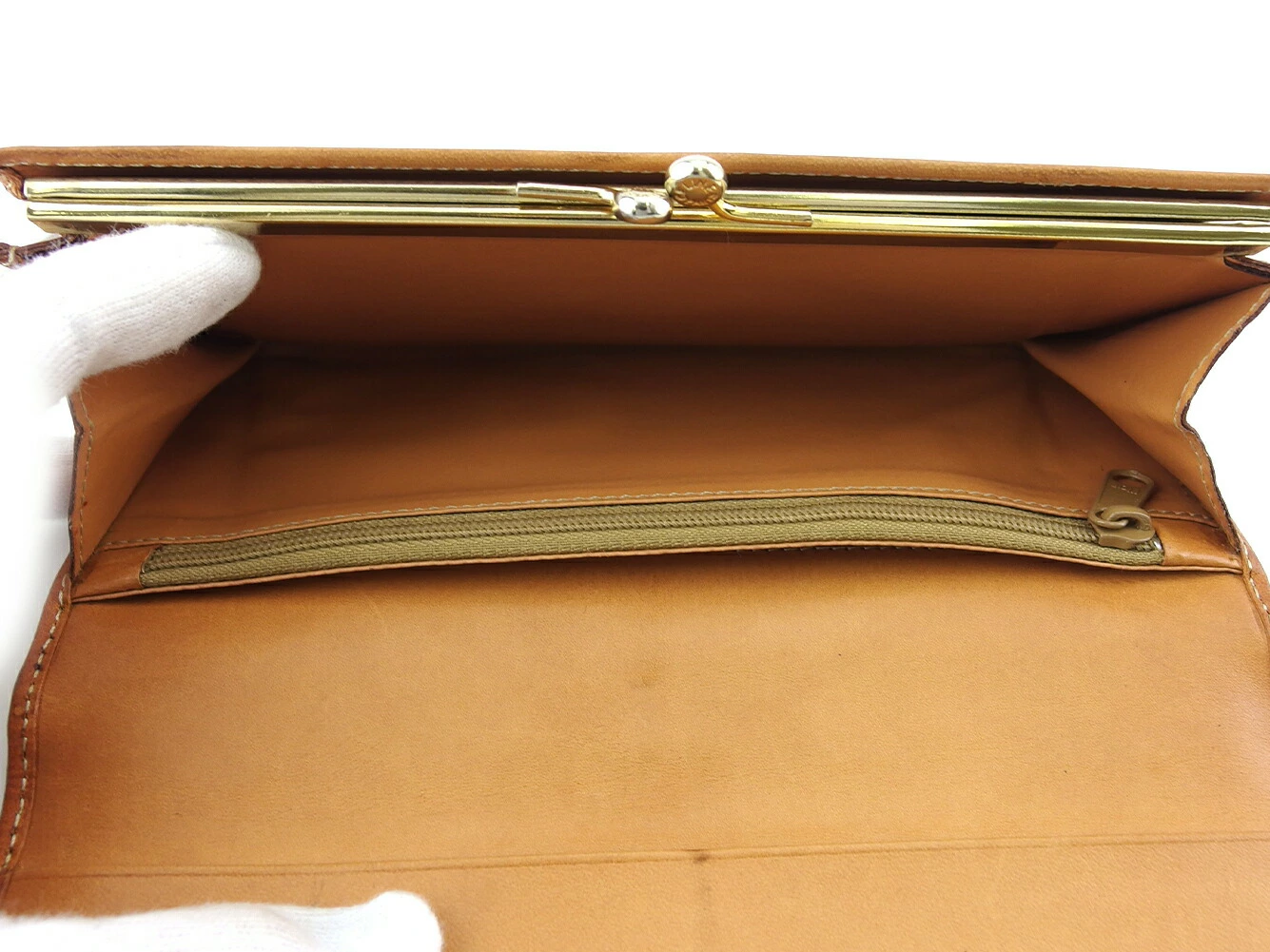| コンディション | 全体の状態詳細:まだまだ十分にお使いいただけます。スレ&汚れ(内側&小銭入れ&カード入れ&ポケットもあり) 傷(内側&小銭入れもあり) 角スレ 金具傷・ハゲ 外パイピングキレ(2ヵ所) などの使用感があります。 |
