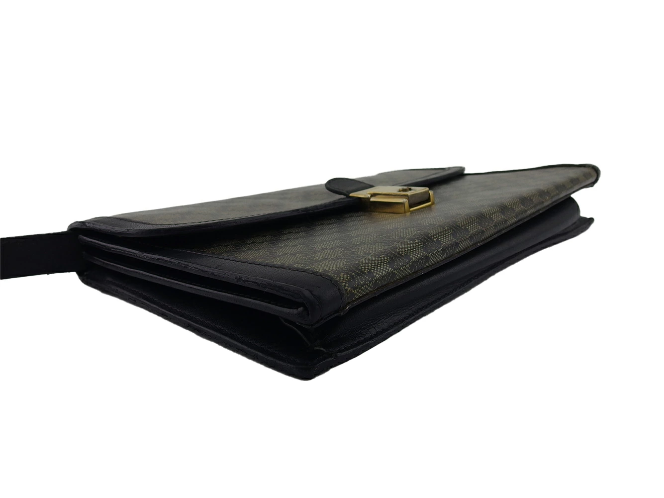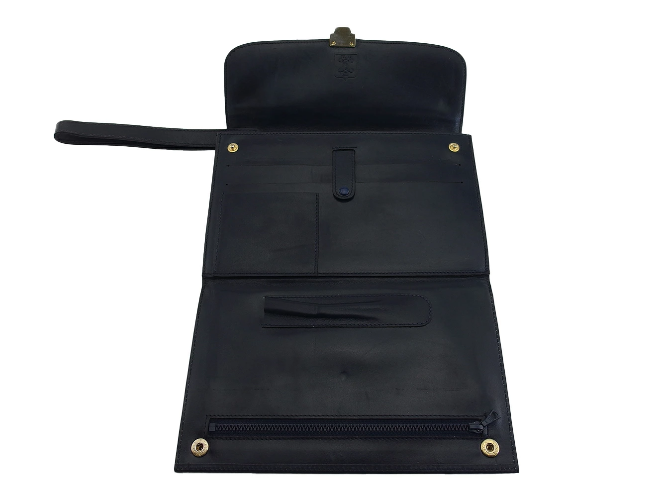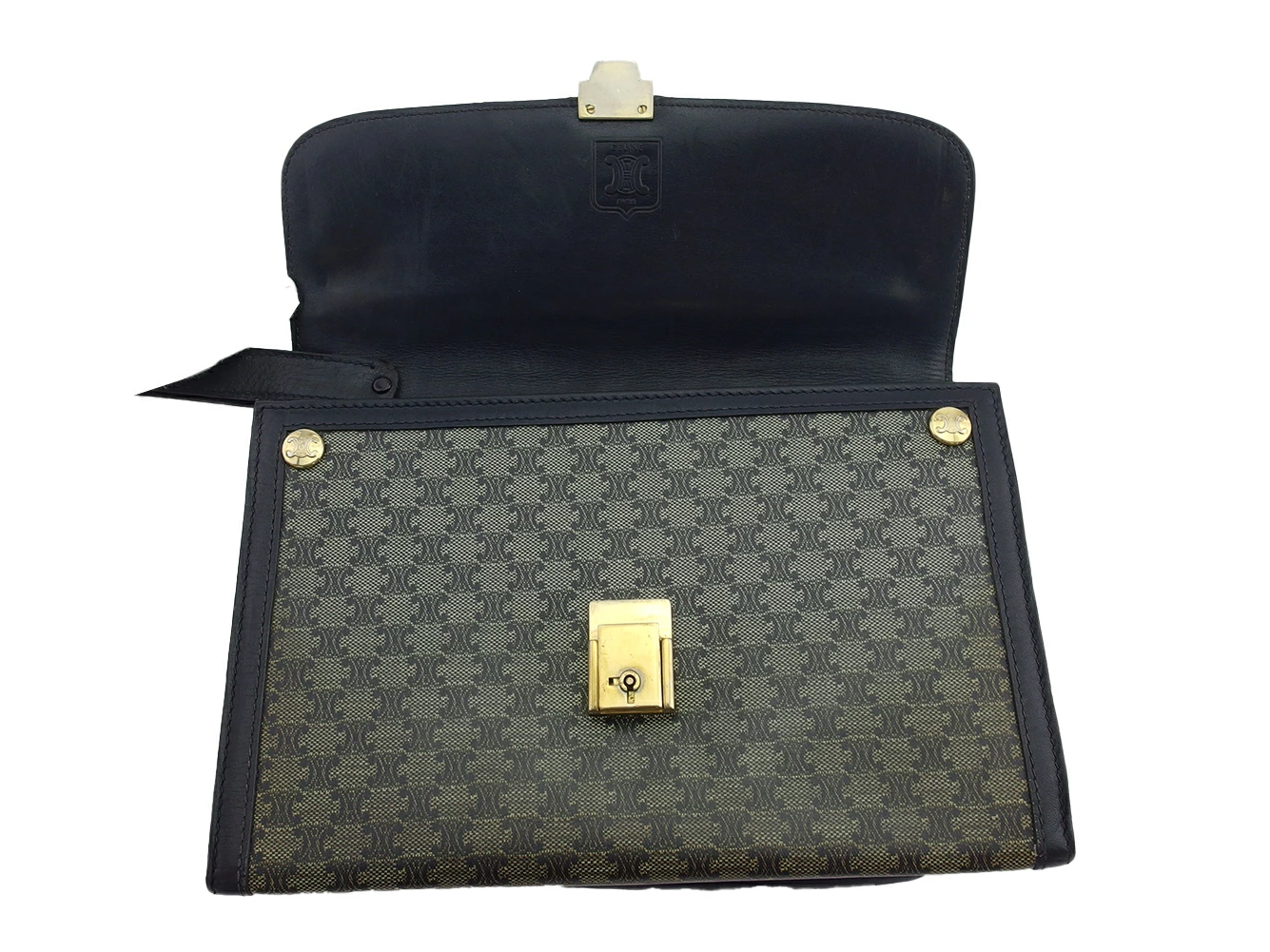 | 備考 | [開口部]差し込みロック式 ※鍵欠損[内側]ハンドストラップ×1(収納可能)ファスナーポケット×2ボタン開閉スリットポケット×2カード入れ×1ペンホルダー×1 横幅:約24.2cm縦幅:約16.6cmマチ:約4.4cmハンドストラップ:本体より約16cm |