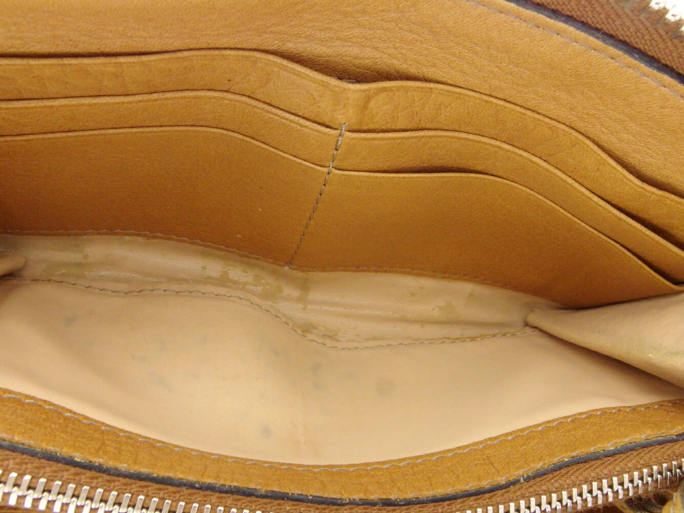 | コンディション | 全体の状態詳細:まだまだお使いいただけます。社外リペア跡(スレ色着色)。小銭入れに、スレ&黒ずみあり。その他 スレ&汚れ(内側&札入れ&カード入れ&ポケットもあり) 傷 金具傷・ハゲ ファスナー少し重め(×2) コバスレ(ファスナープル革×2) 色移り跡(ポケット) ハガレ小(内底部&内マチ横・使用注意) などの使用感があります。 |
