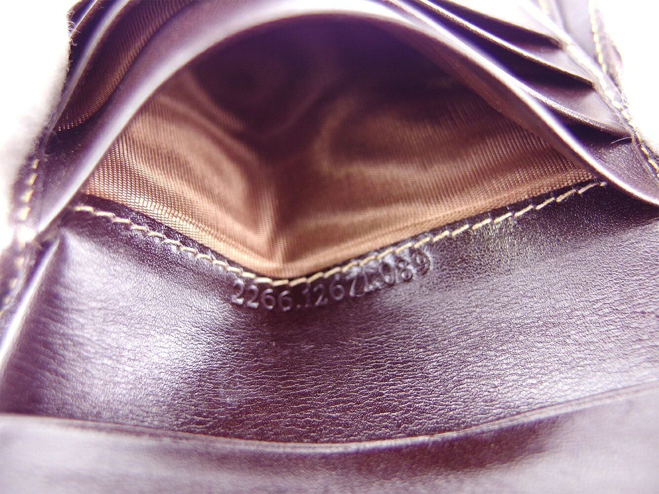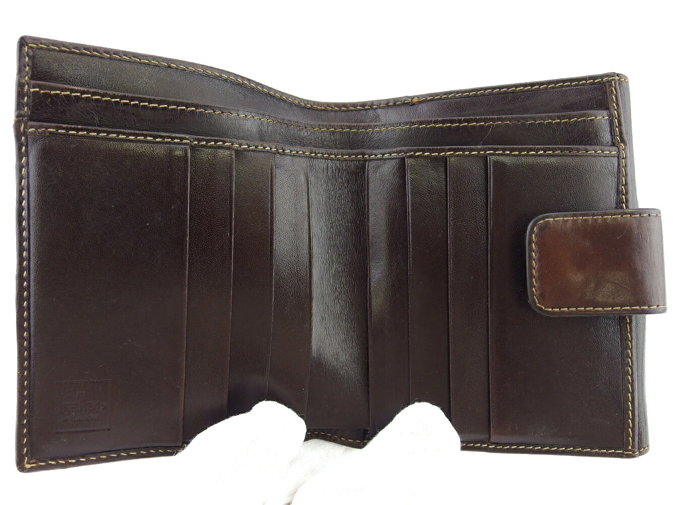 | コンディション | 全体の状態詳細:まだまだお使いいただけます。社外リペア跡(小銭入れ穴1ヵ所当て布貼り付け)あり。その他 スレ&汚れ(内側&札入れ&小銭入れ&カード入れ&ポケットもあり) 傷(内側もあり) ほつれ(角一部) シミ(小銭入れフラップ内側) 金具ハゲ(ホック) キレ小(角1ヵ所程&内パイピング1ヵ所程) 湿り気(主に札入れ) などの使用感があります。 |