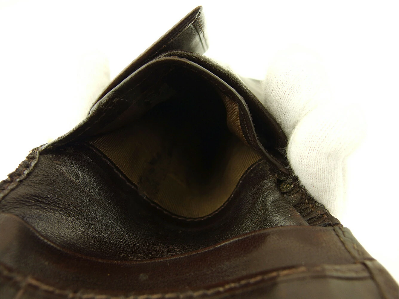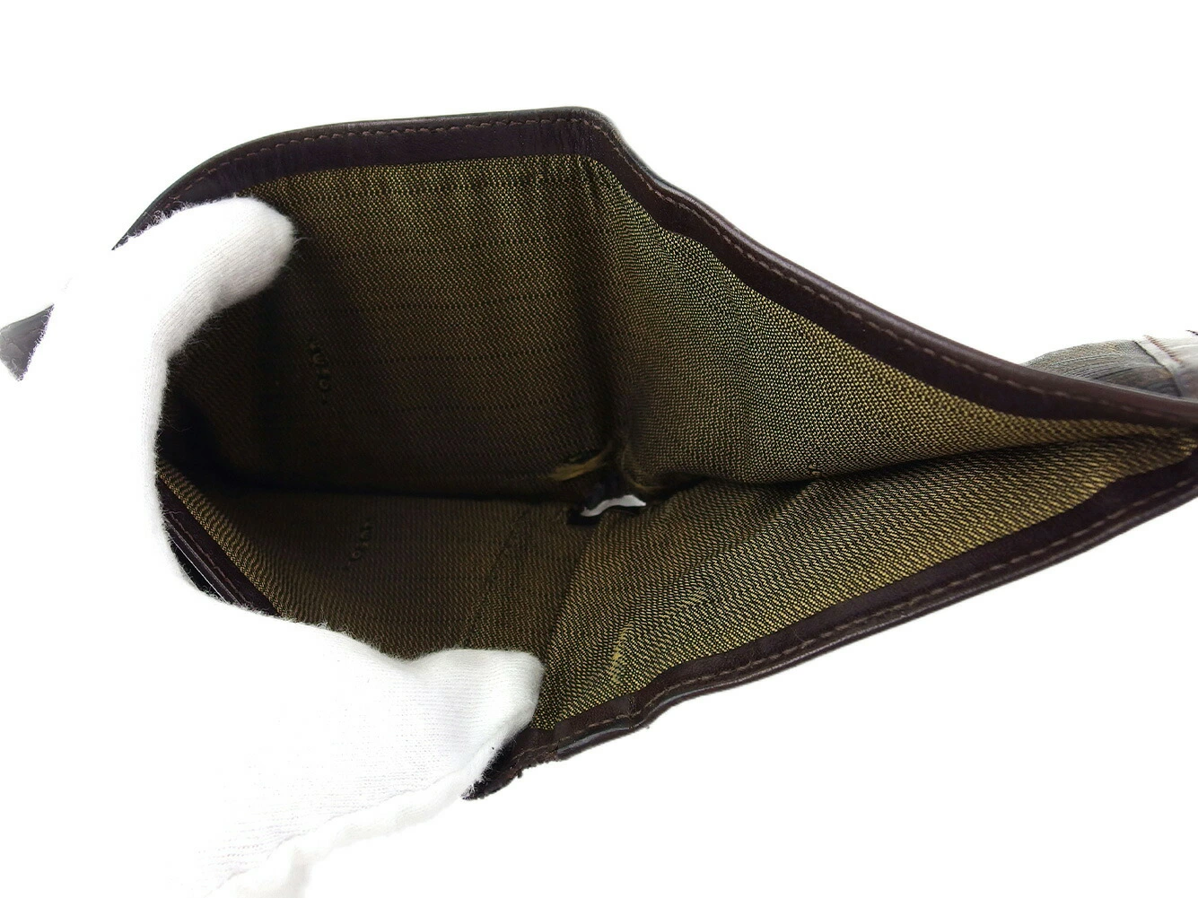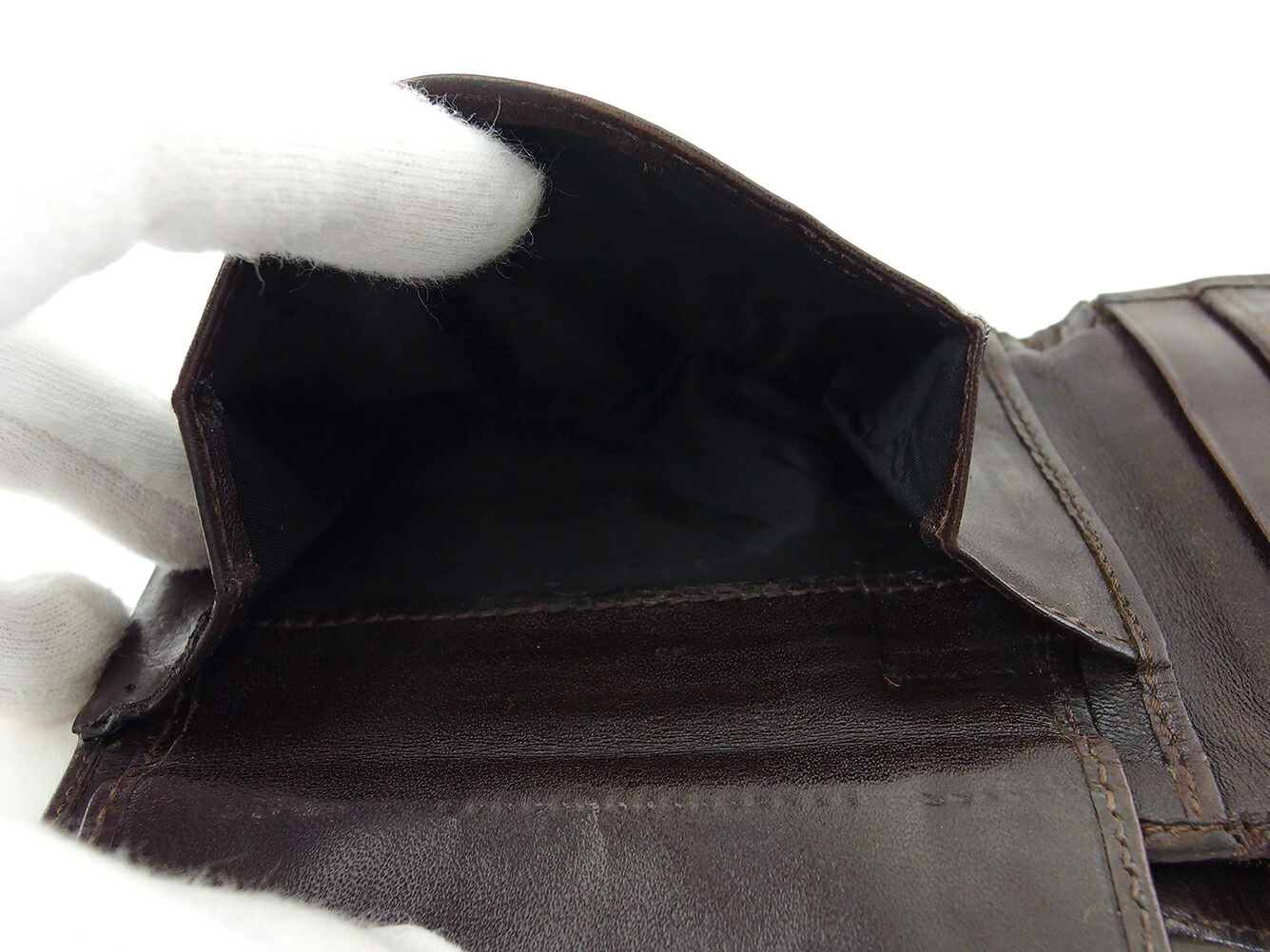 コンディション全体の状態詳細:使用感がありますが、お使いいただけます。社外リペア跡(角接着、小銭入れ布貼り替え、小銭入れ横破れ補強接着)あり。その他 スレ&汚れ(内側&札入れ&小銭入れ&カード入れ&ポケットもあり) 傷&ヨレ(内側) ほつれ(主に折り曲げ部角) シミ(ポケット) 黒ずみ 切れ(角&内パイピング4ヵ所程) などの使用感があります。