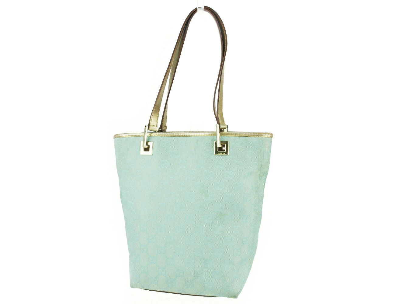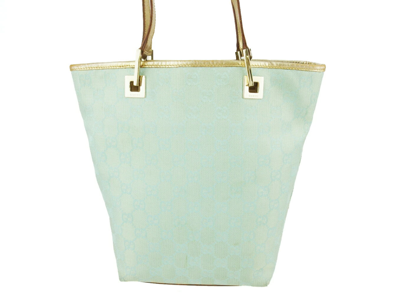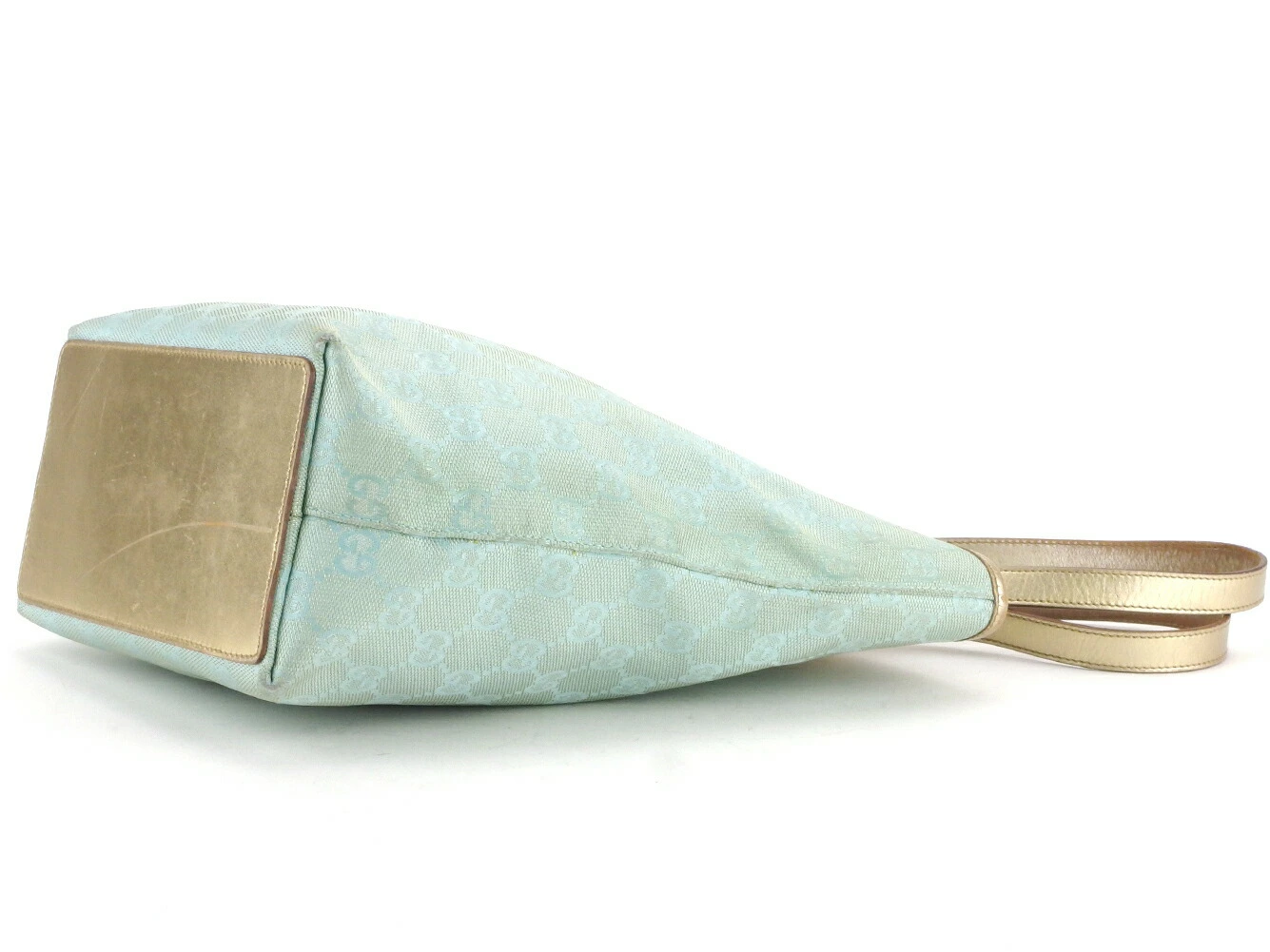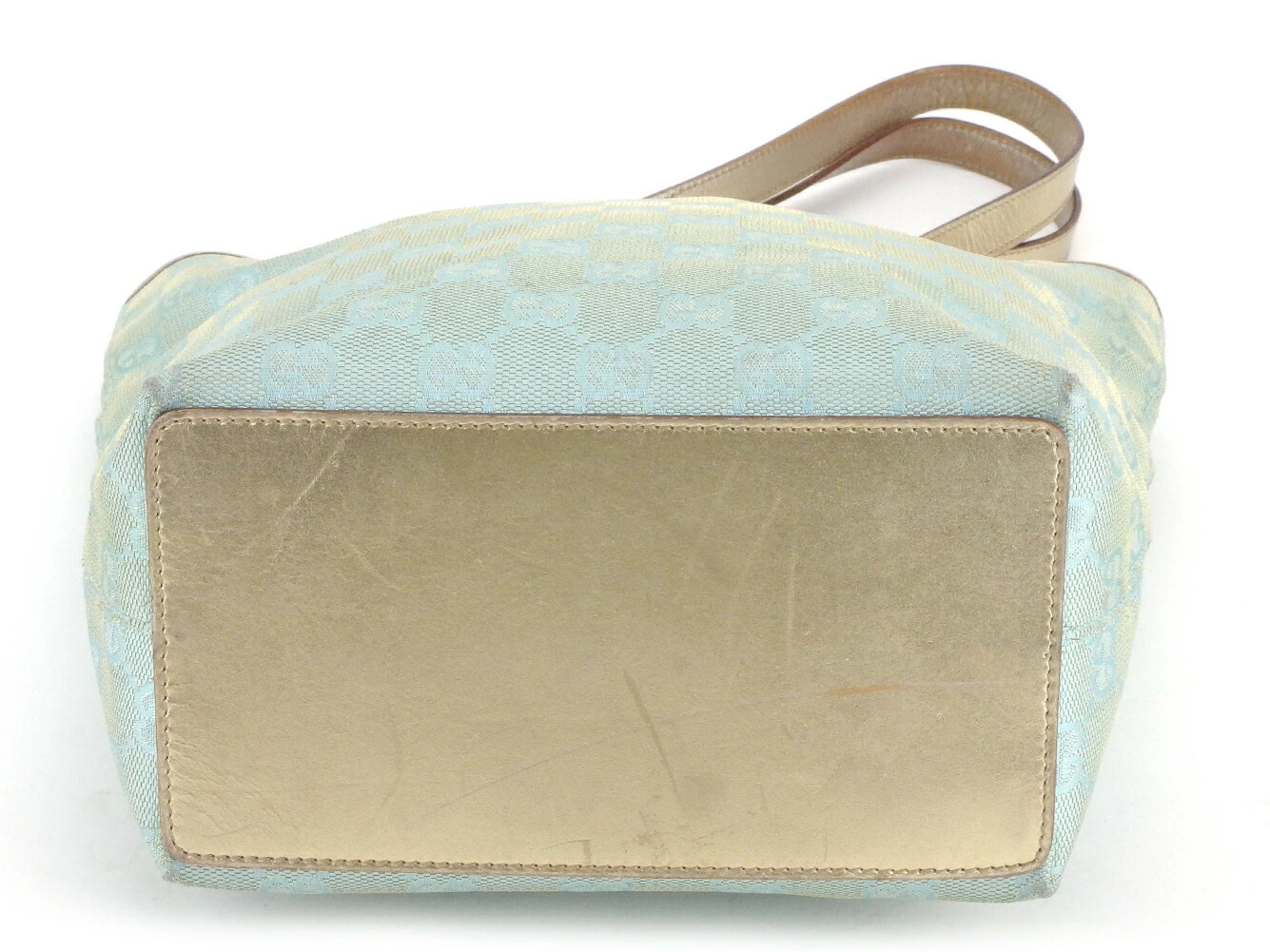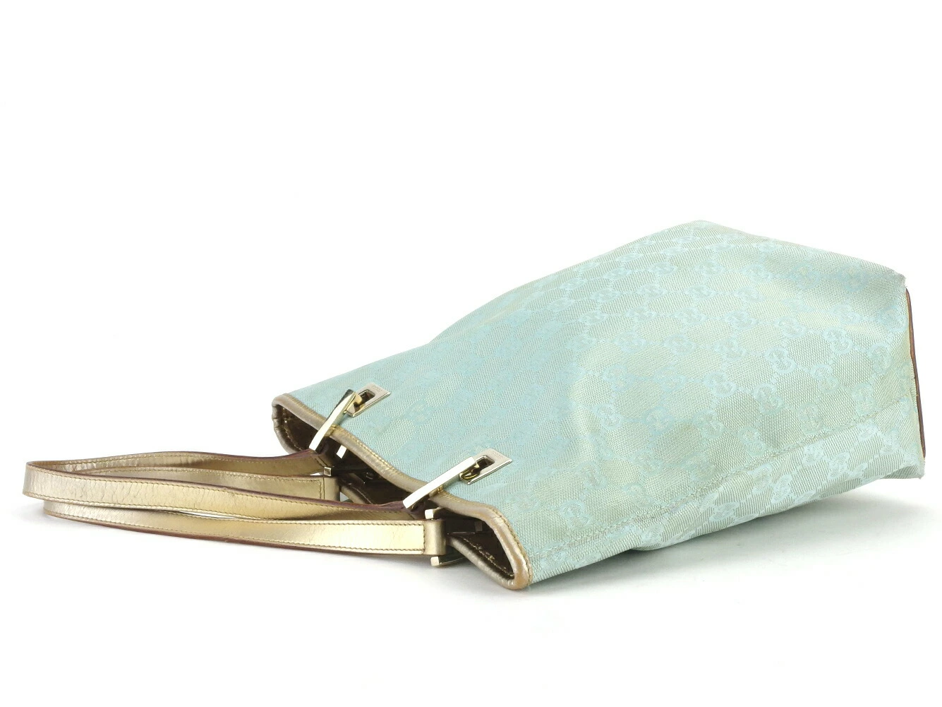 [24% OFF Coupon] Gucci GG Canvas Tote Bag in Mint and Gold, Women's, Pre-owned