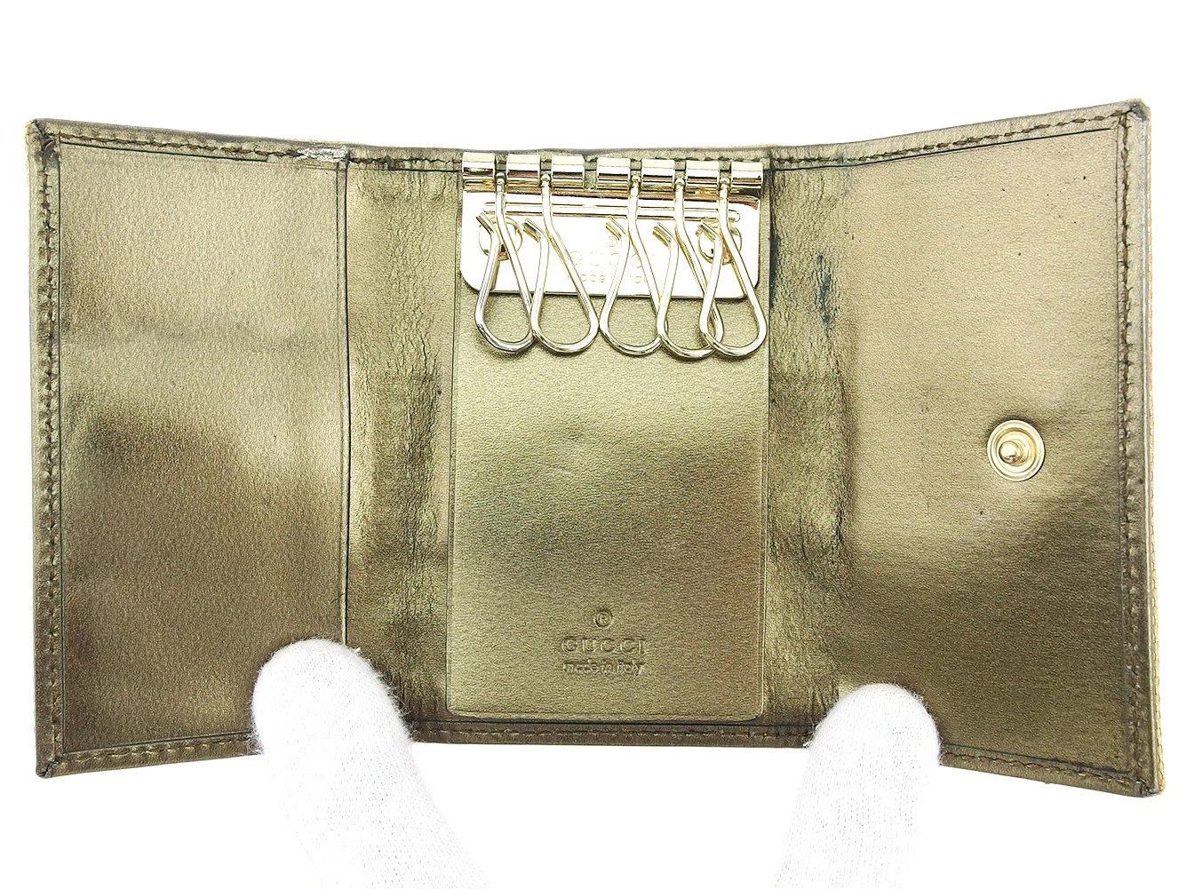 [24% OFF Coupon] Gucci Key Case, Sherry, Gold x Beige x Khaki, Women's, Pre-owned, GUCCI