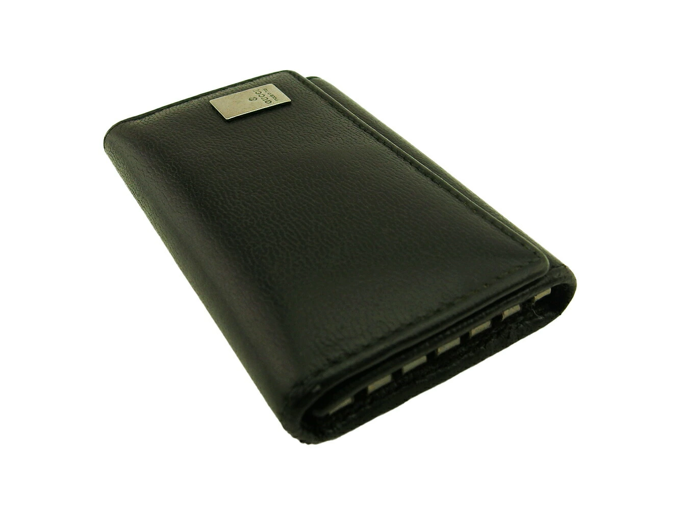 [24% OFF Coupon] Gucci Key Case with Logo Plate, Black and Silver, Women's, Pre-owned