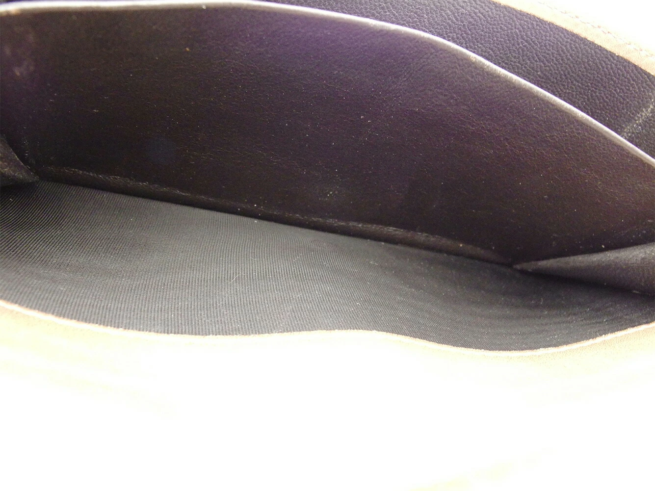 コンディション全体の状態詳細:まだまだお使いいただけます。社外リペア跡(スレ色着色)あり。その他 スレ&汚れ(内側&札入れ&小銭入れ&カード入れ&ポケットもあり) 傷(内側&小銭入れもあり) 角スレ 金具傷・ハゲ コバヒビ割れ(両フラップ付け根) キレ小(角一部) 変色(外側) ラメハガレ小(内側もあり) などの使用感があります。