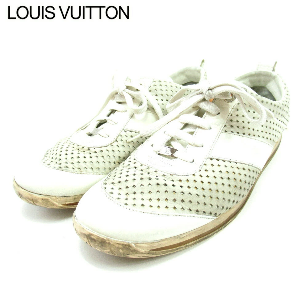 [24% OFF Coupon] Louis Vuitton #7 Half Punching Sneakers, White/Gray, Women's, Pre-owned