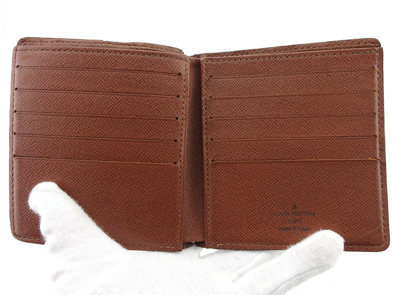 | コンディション | 全体の状態詳細:まだまだお使いいただけます。 スレ&汚れ(内側&札入れ&ポケットもあり) ほつれ(角2ヵ所) 浮きシワ(カード入れ5ヵ所) ヒビ割れ(角&上部&内側縁3ヵ所程) コバ割れ などの使用感があります。 |