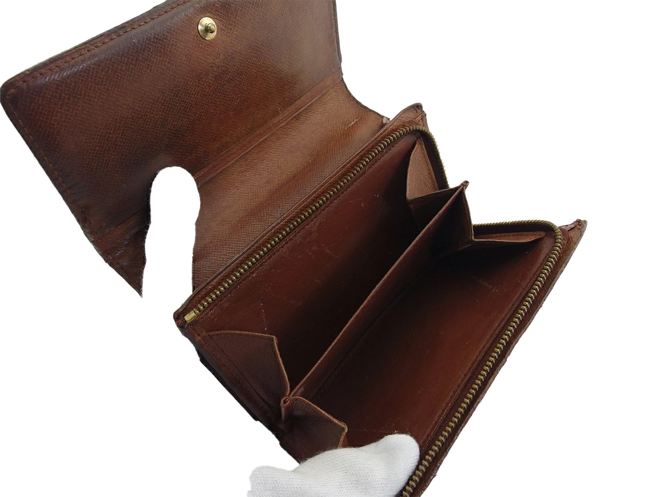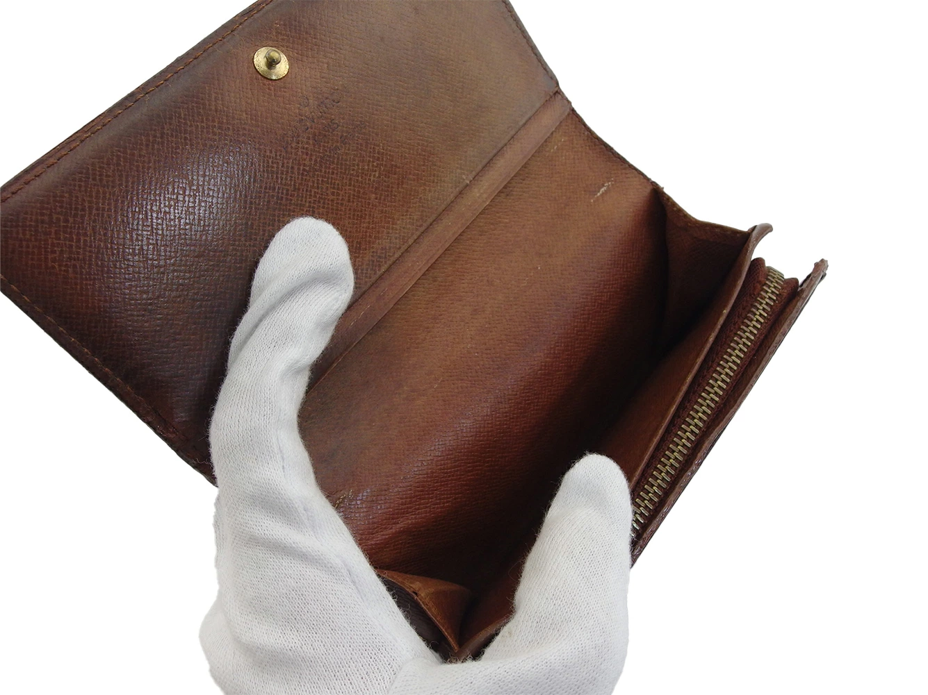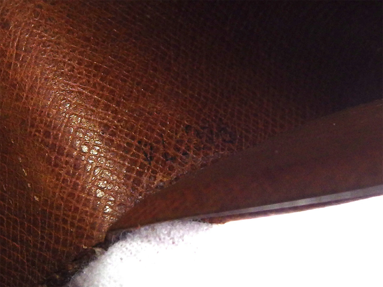 | コンディション | 全体の状態詳細:大きなダメージは無く、まだまだご使用いただけます。社外リペア跡(札入れ&オープンポケット大小の裏張り張り替え補修、コバの傷み補修)あり。外側:モノグラムキャンバス(スレ、角スレ、折り曲げ部分のコバに傷み&切れ&補修跡、被せに反り)あり。内側:オープンポケット(表面に黒ずみ箇所、スレ、傷、たるみ、裏生地の補修跡)、小銭入れ内(傷、汚れ、ファスナー金具に傷&メッキハゲ)、札入れ内(黒ずみ、傷、汚れ、裏生地の補修跡)あり。その他、目立たない 傷 汚れ などの一般的使用感がある場合がございます。ご了承ください。 |