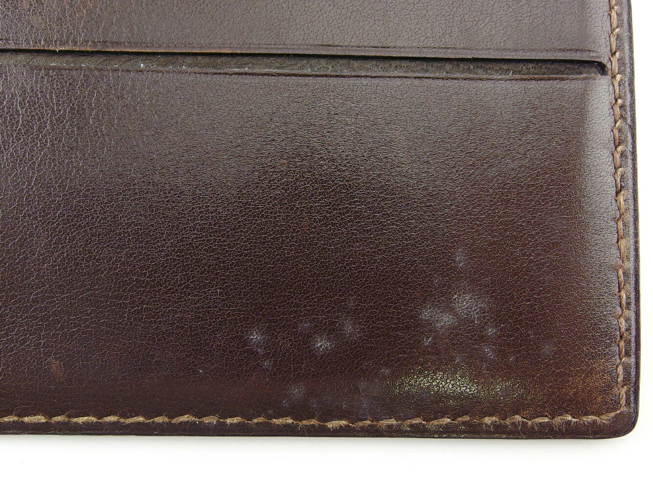 コンディション全体の状態詳細:使用感がありますが、お使いいただけます。スレ&汚れ(内側&札入れ&カード入れ&ポケットもあり) 角スレ シミ(内側) 金具傷・ハゲ コバスレ 傷(内側&札入れ&ポケット) ほつれ(角&内側横3cm程2ヵ所) などの使用感があります。