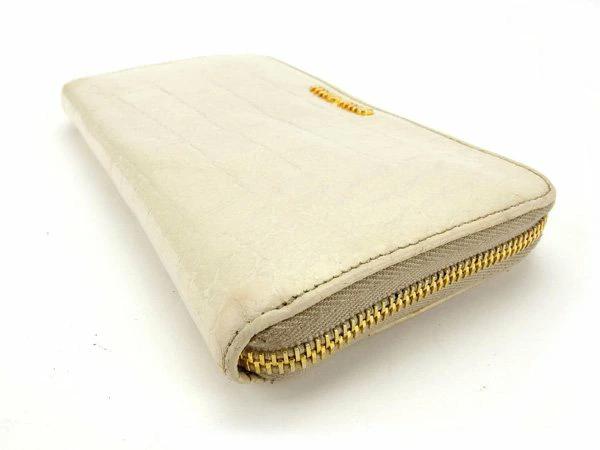 [24% OFF Coupon] Miu Miu Long Wallet, Crocodile-look, White and Gold, Women's, Pre-owned