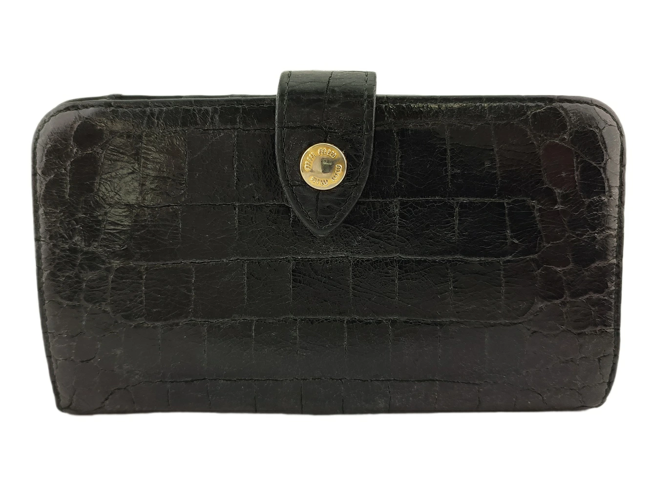 | 備考 | [開口部]ボタンホック[外側]がま口式小銭入れ(ファスナー仕切りポケット×1)×1[内側]札入れ×1カード入れ×8オープンポケット×4 幅:約16.6cm高さ:約9.5cmマチ:約2.5cm |