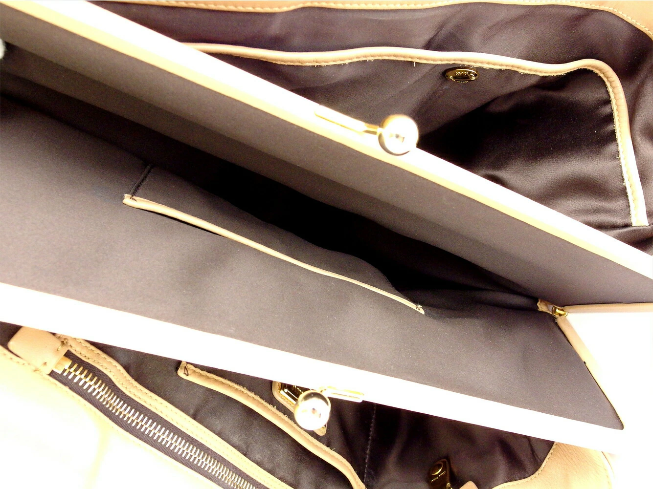 | 備考 | [内側]ファスナーポケット×1ボタンホックポケット×1オープンポケット×1がま口仕切りポケット×1(ポケット×1) 幅:約35.5cm〜39cm高さ:約34cmマチ:約13cmショルダー長さ:本体より約20cm |