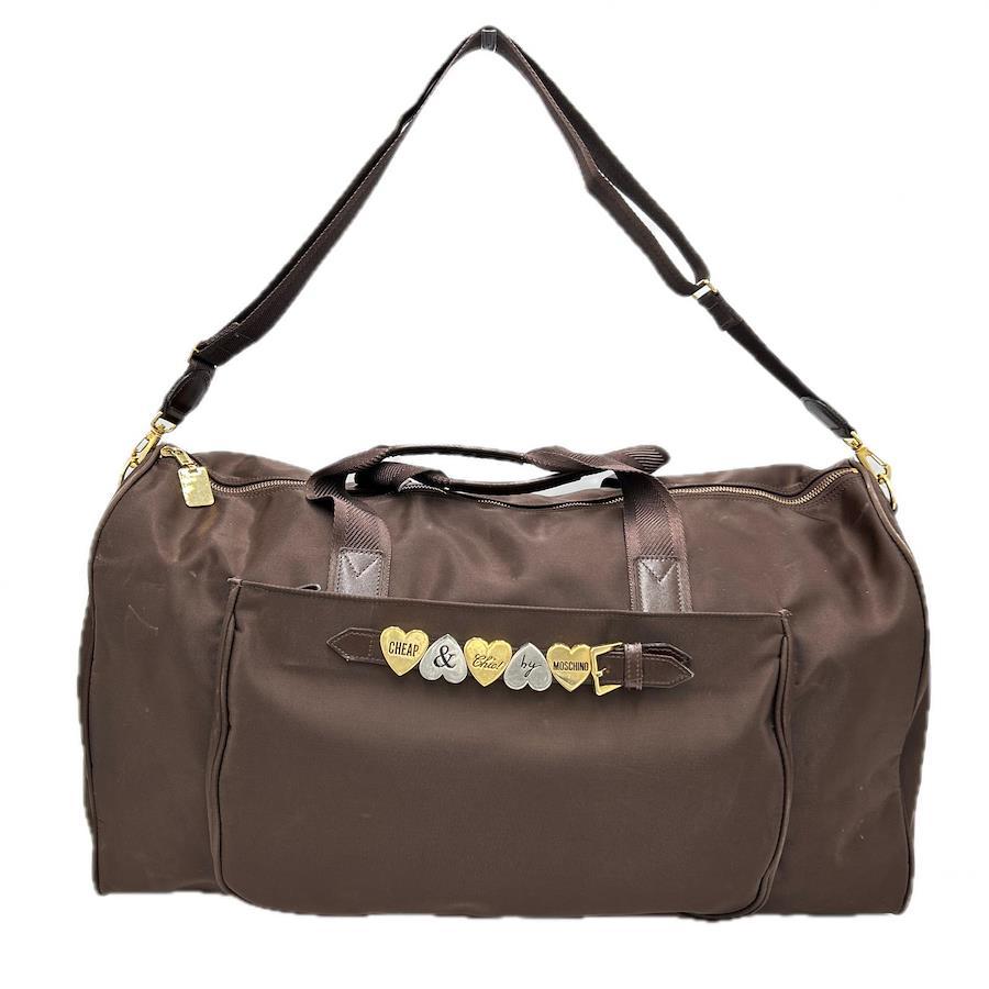 | スタッフコメント | モスキーノ(MOSCHINO)のチープ&シック(CHEAP AND CHIC)シリーズのボストンバッグです。 このバッグは、シックなブラウンカラーのナイロン素材を使用しており、軽くて扱いやすいのが特徴です。フロントには「CHEAP & CHIC by MOSCHINO」のロゴが入ったハート型のチャームがあしらわれ、ブランドらしい遊び心のあるデザインが魅力的です。 たっぷりとした収納力があるため、着替えやタオル、シューズなども余裕をもって収納できるので、旅行におすすめです。ショルダーストラップも付属しているため、手持ちと斜め掛けの2WAYでお使いいただけます。表側にはポケットもあり、小物の整理に便利です。底部には底鋲が付いており、バッグを置いた際に汚れにくい仕様です。 モスキーノの個性的なデザインが、いつものコーディネートにアクセントを加えてくれます。 |