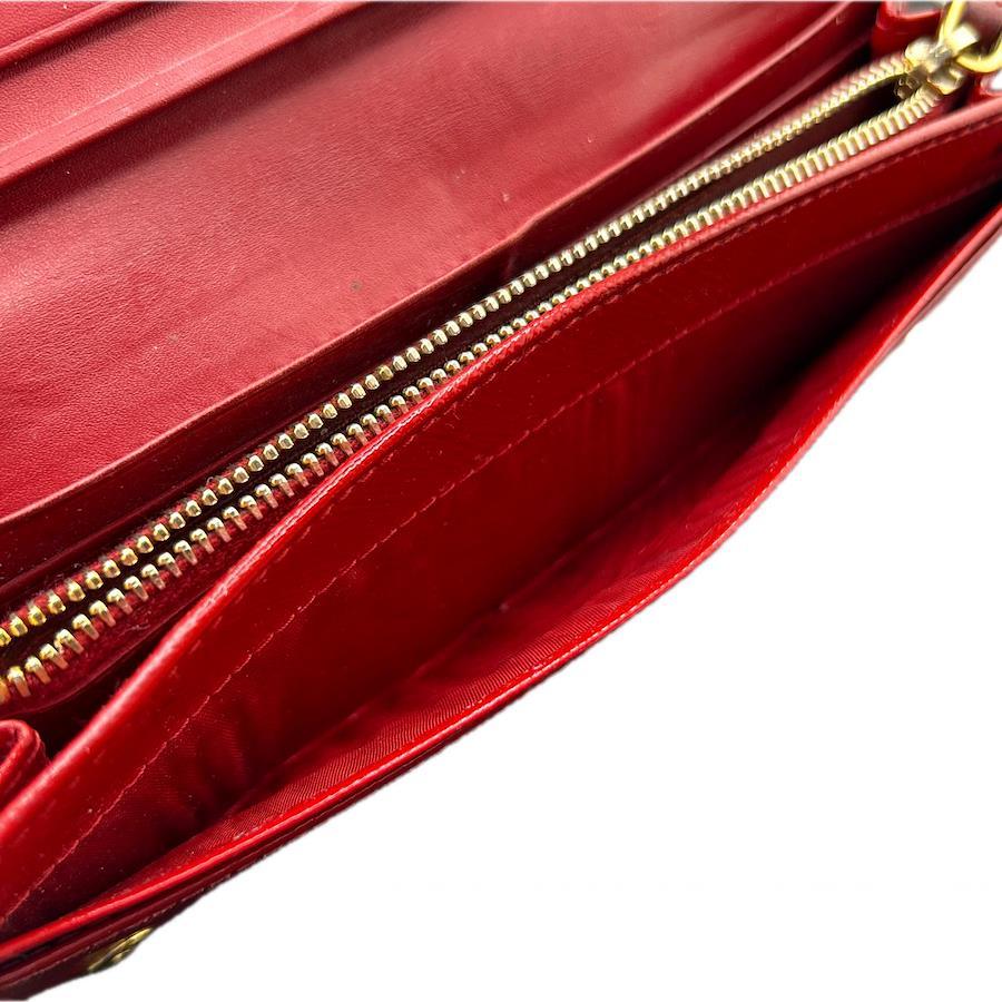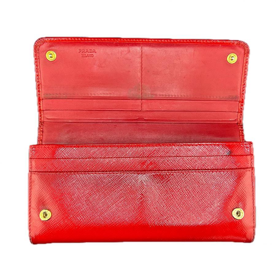 | スタッフコメント | PRADAの人気ライン、サフィアーノレザーのリボン付き長財布です。鮮やかなレッドカラーと、フロントに施されたリボンモチーフが、女性らしい華やかさを演出します。傷や汚れに強いサフィアーノレザーを使用しており、デイリーユースに最適。 内側も充実しており、札入れ、小銭入れ、複数のカードポケットを備えた実用的なデザイン。見た目のおしゃれさだけでなく、機能性も兼ね備えています。 使用感はありますが、プラダの上品なデザインは健在です。新しい財布をお探しの方や、PRADAがお好きな方におすすめです。 |