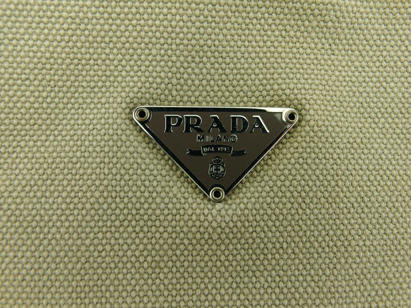 [24% OFF Coupon] Prada Tote Bag with Triangle Logo, Beige, Gray, Silver, Women's, Pre-owned, PRADA