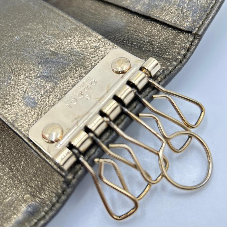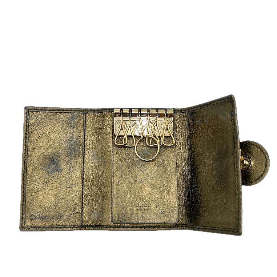 | スタッフコメント | グッチの象徴であるGG柄が型押しされた、エレガントなメタリックカーキのキーケースです。光沢のあるカーキカラーは、シックで落ち着いた印象を与えつつ、使うたびに気分を上げてくれる華やかなデザインです。 6連のキーフックが付いており、複数の鍵をすっきりと収納できます。内側にはポケットも備わっているため、ちょっとしたカードやメモなどを入れておくことも可能です。 バッグの中でも見つけやすい色合いで、日常使いにぴったりです。 |