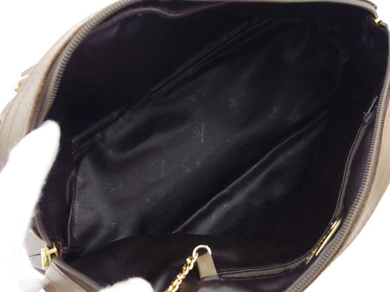 コンディション全体の状態詳細:若干の使用感はございますが内側は綺麗で状態が良く、まだまだご使用いただけます。PVC(裏側に1箇所点状の傷、)、持ち手&レザーパーツ(傷&汚れ&スレ)、ファスナー金具&装飾金具類(傷、錆、変色、くすみ)、Vロゴ(メッキハゲ、くすみ、変色)あり。その他、中古品のため 目立たない傷・汚れ などの一般的使用感がございます。