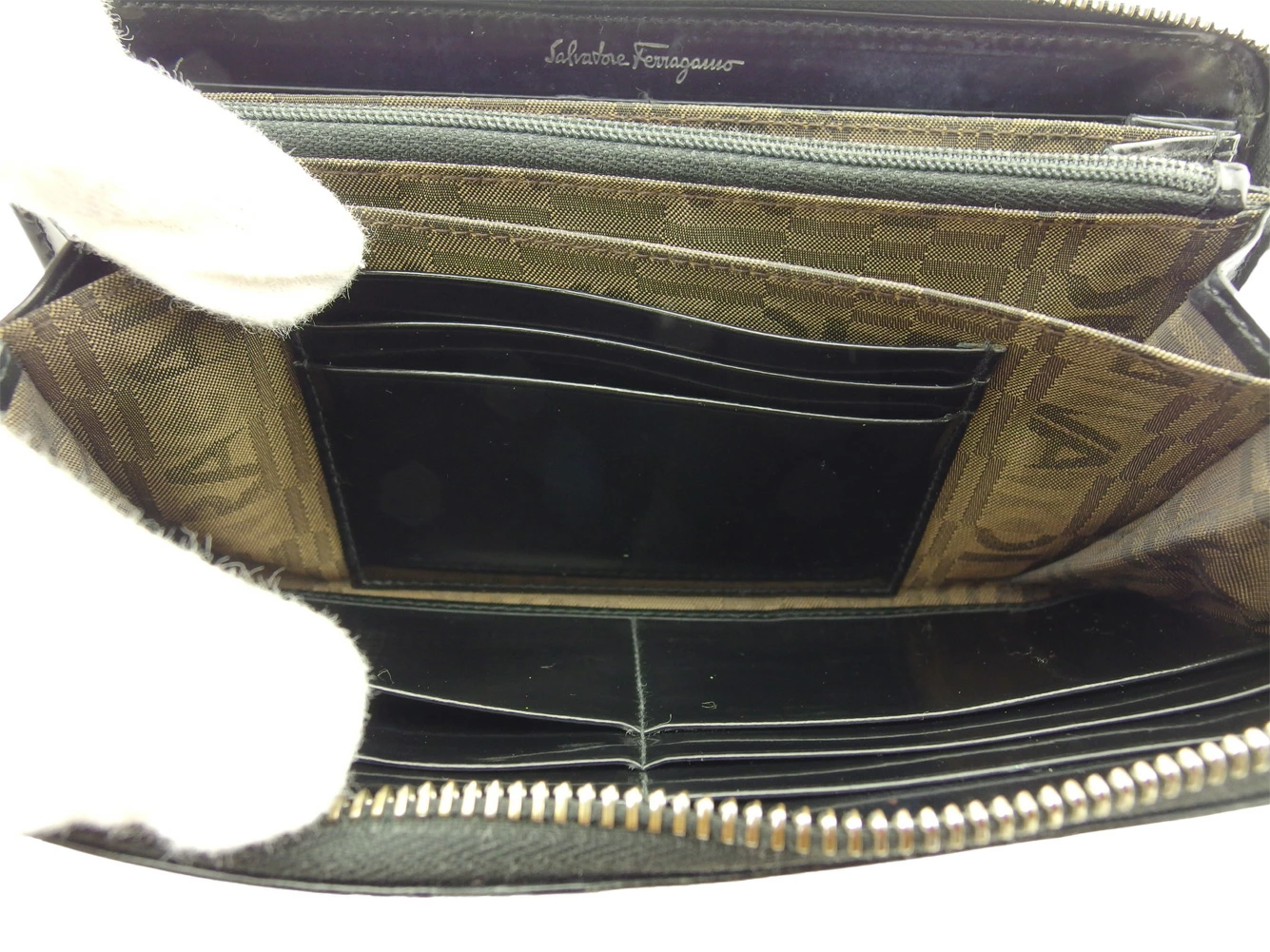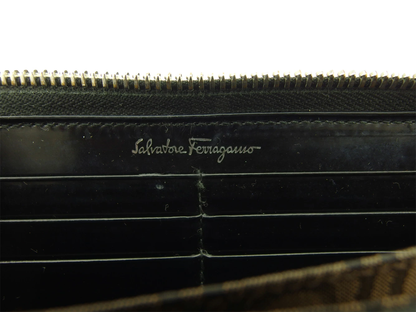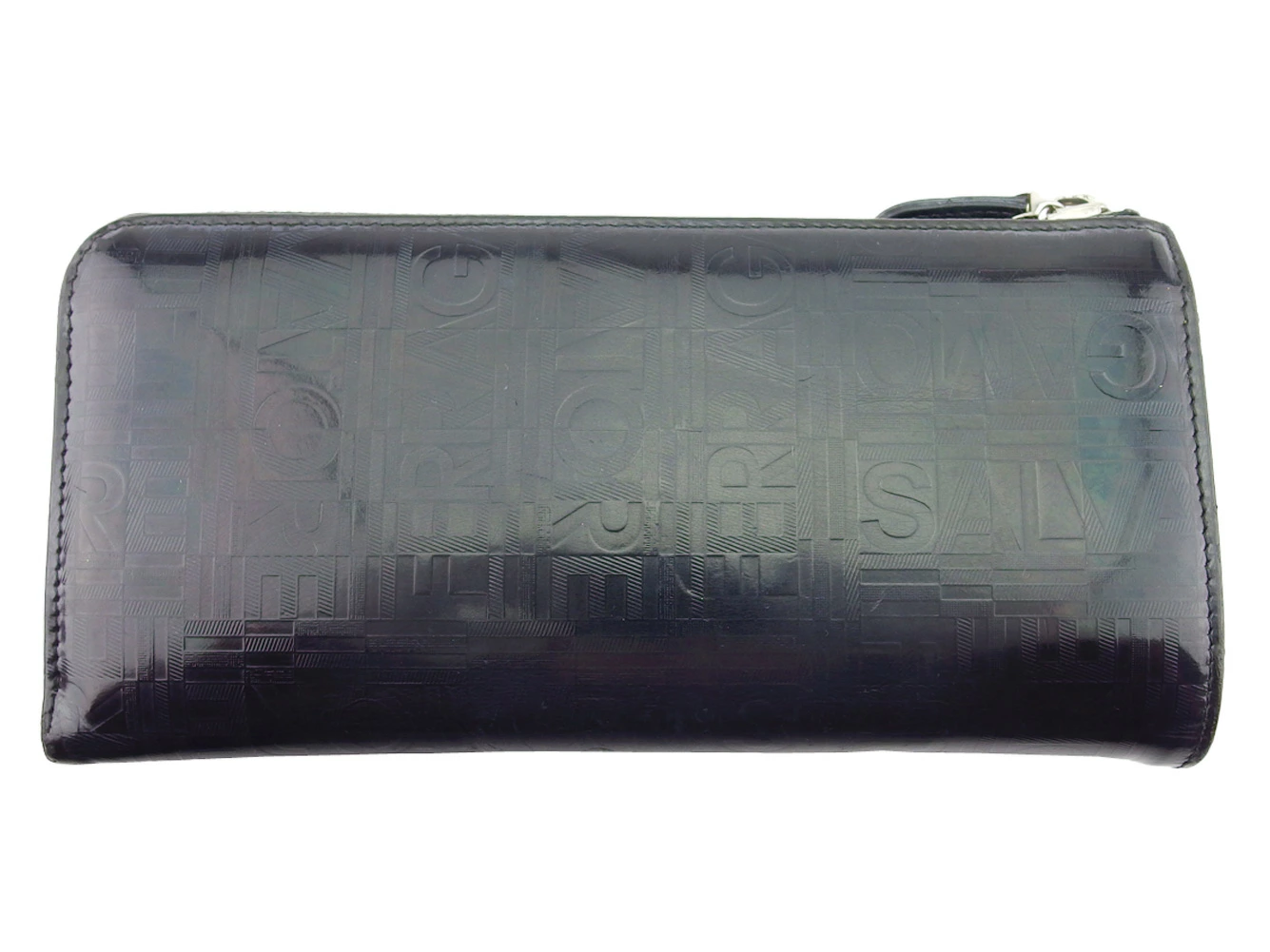[24% OFF Coupon] Salvatore Ferragamo Long Wallet with Logo Pattern, Navy and Silver, Women's, Pre-owned