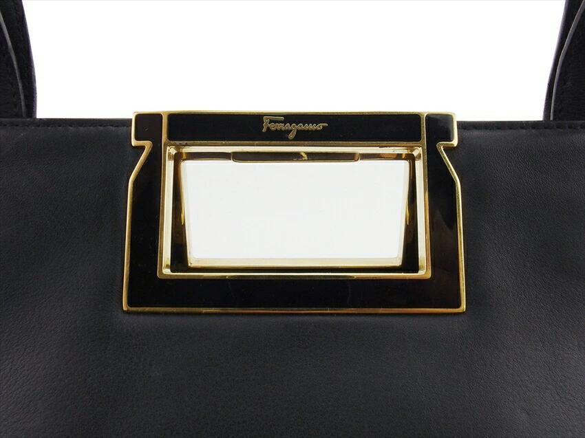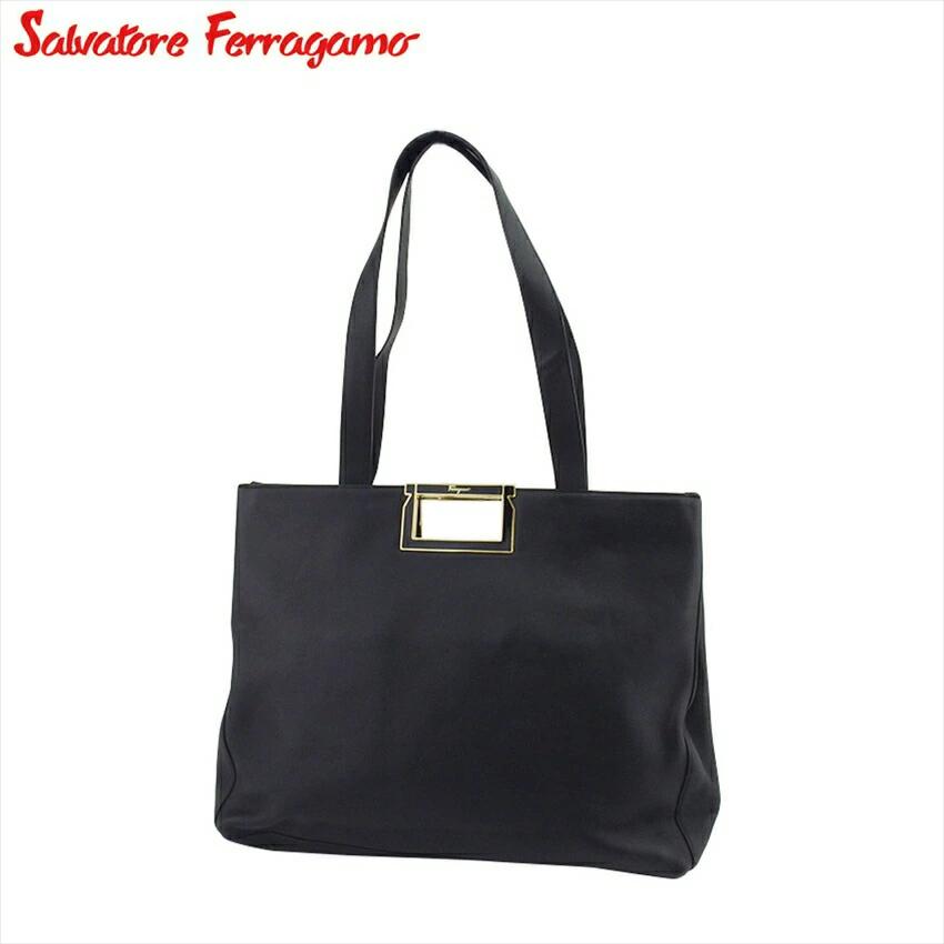 [24% OFF Coupon] Salvatore Ferragamo Tote Bag, Black x Gold, Women's, Pre-owned